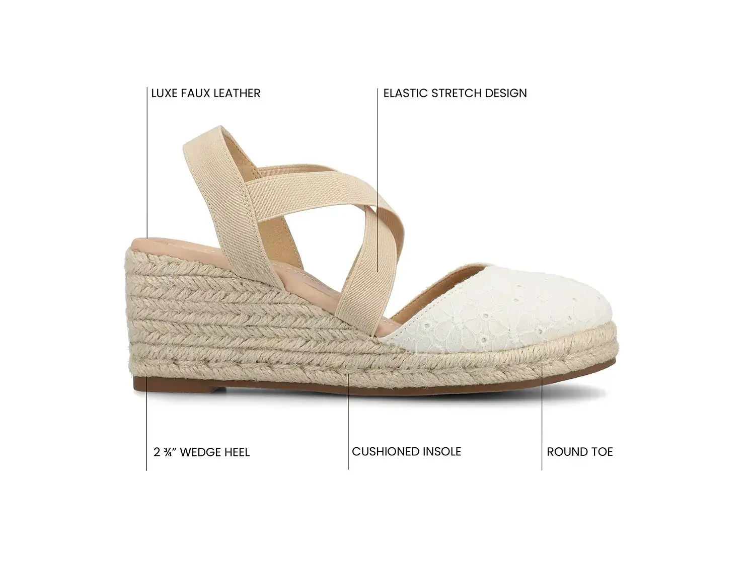 Когда температура поднимается, разнообразьте свой гардероб с помощью wedge сандалий Ashlee от Journee. Декор из эспадриль и дизайн, вдохновленный кружевом, придают этой паре богемный шик, в то время как мягкая стелька смягчает ваши шаги.