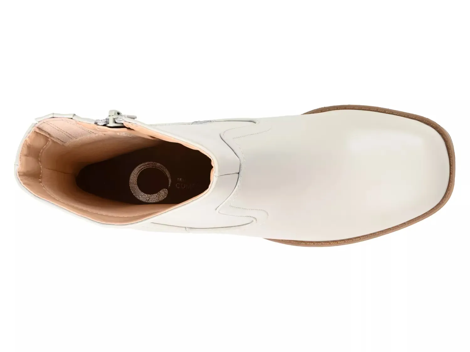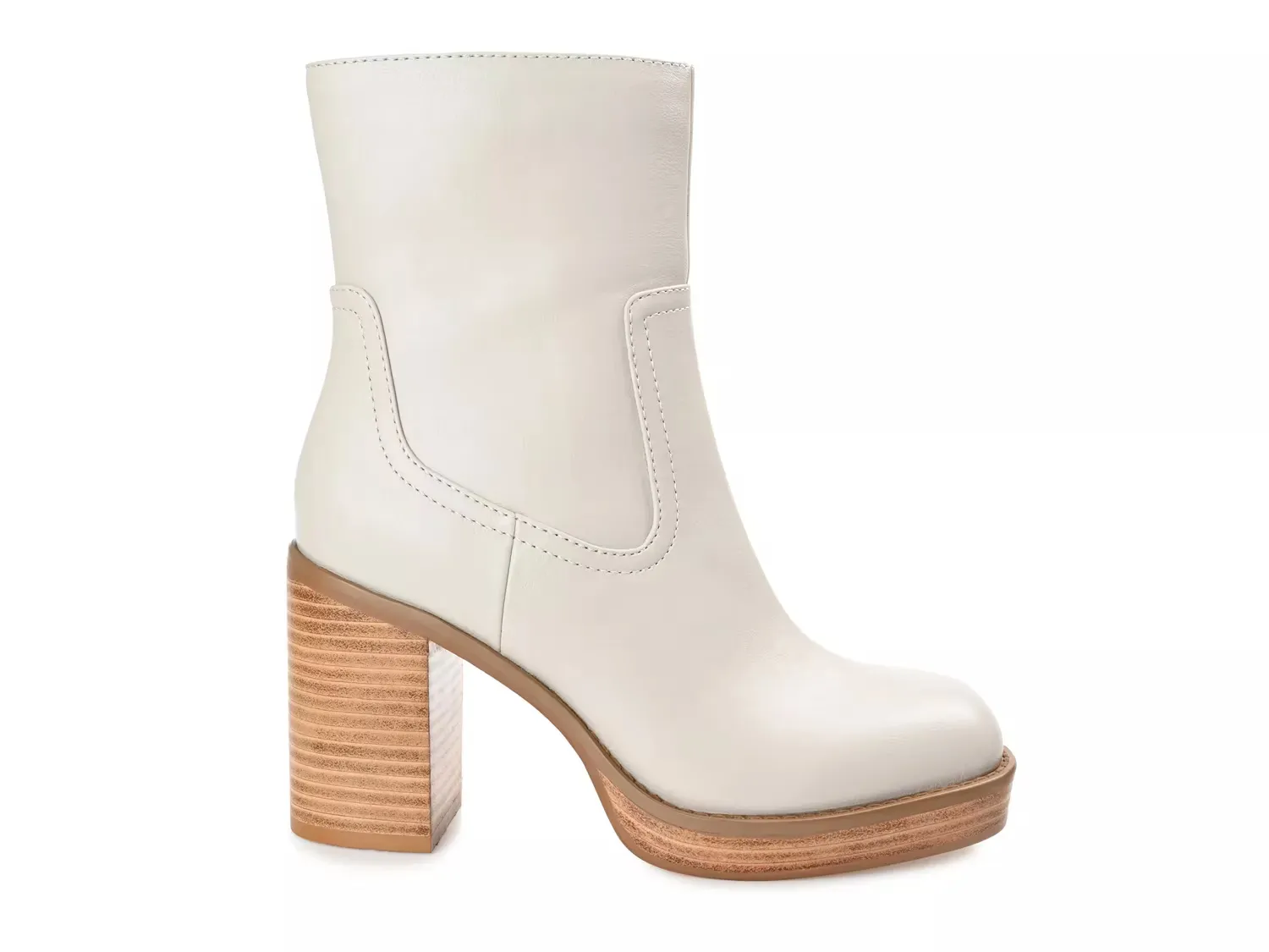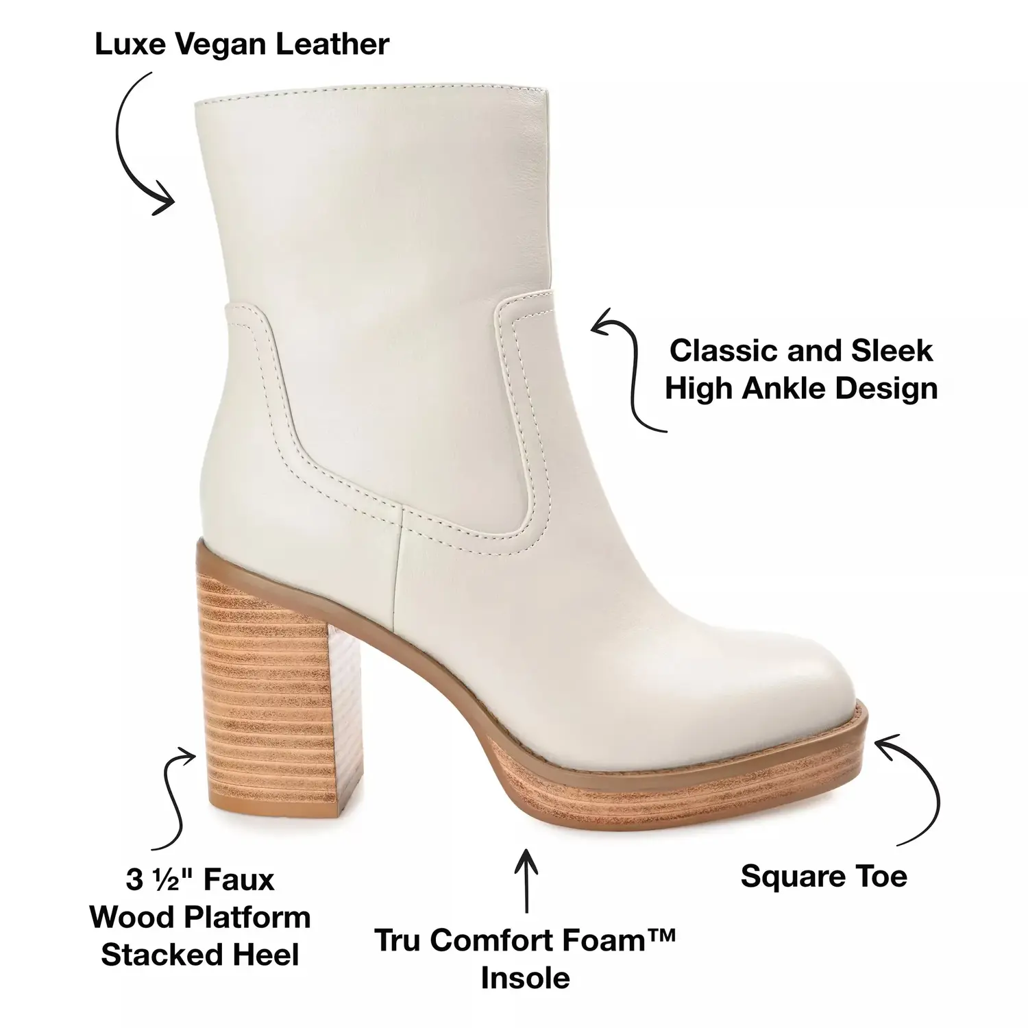 Выглядите стильно весь день в ботильонах Brittany из коллекции Journee. С высоким анкелем, эти ботильоны на молнии имеют верх из веганского синтетического материала, элегантный квадратный носок, уютную стельку из Tru Comfort Foam и платформенный каблук из искусственного дерева.