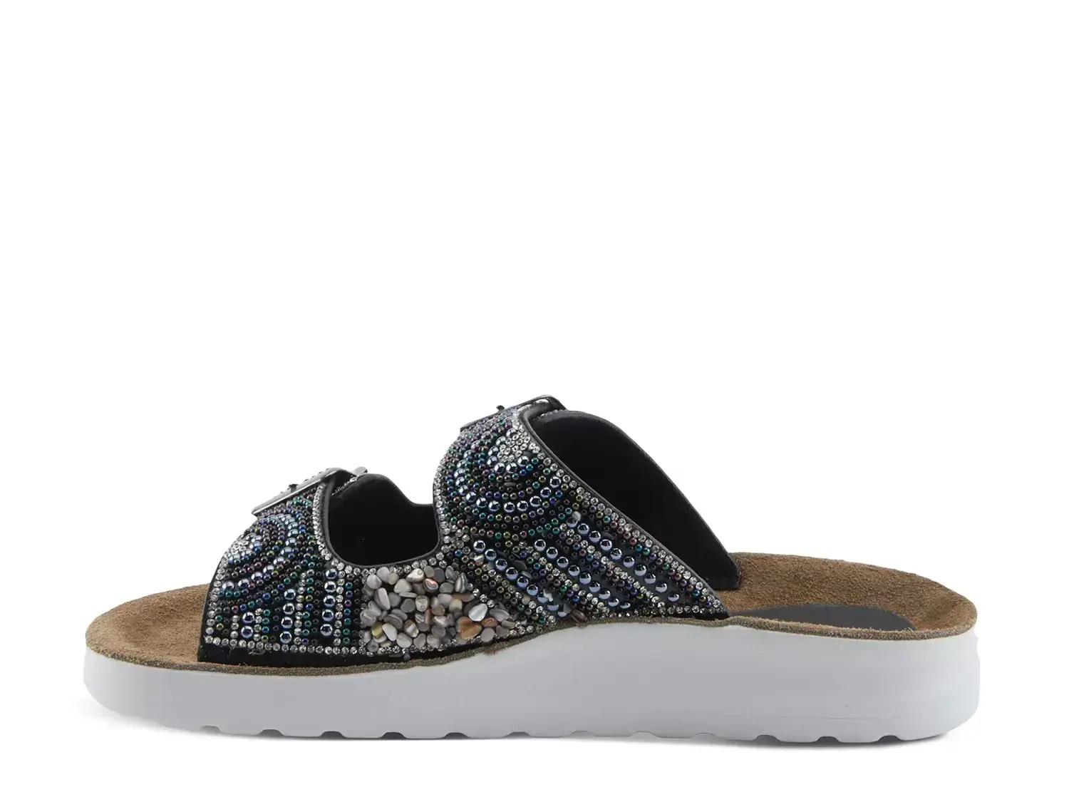 Привлеките внимание всей толпы с помощью босоножек на танкетке Flexus Cytheria. Сияющие бусины и блестящие украшения на верхней части акцентируют внимание на этих сандалиях, в то время как анатомическая стелька соответствует контурам вашей стопы, обеспечивая максимальную поддержку свода и комфорт.