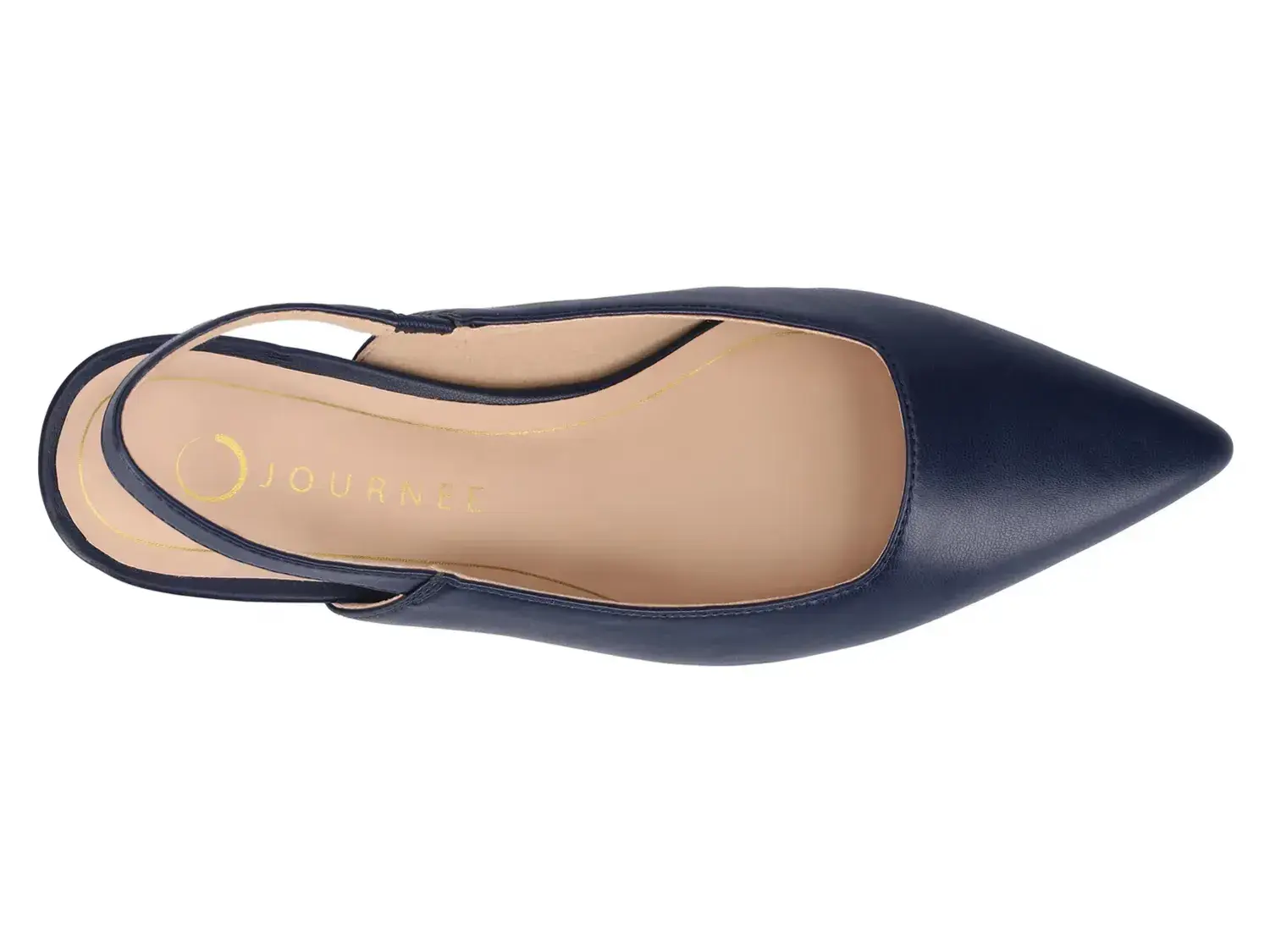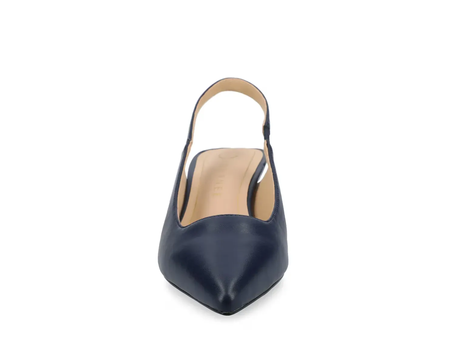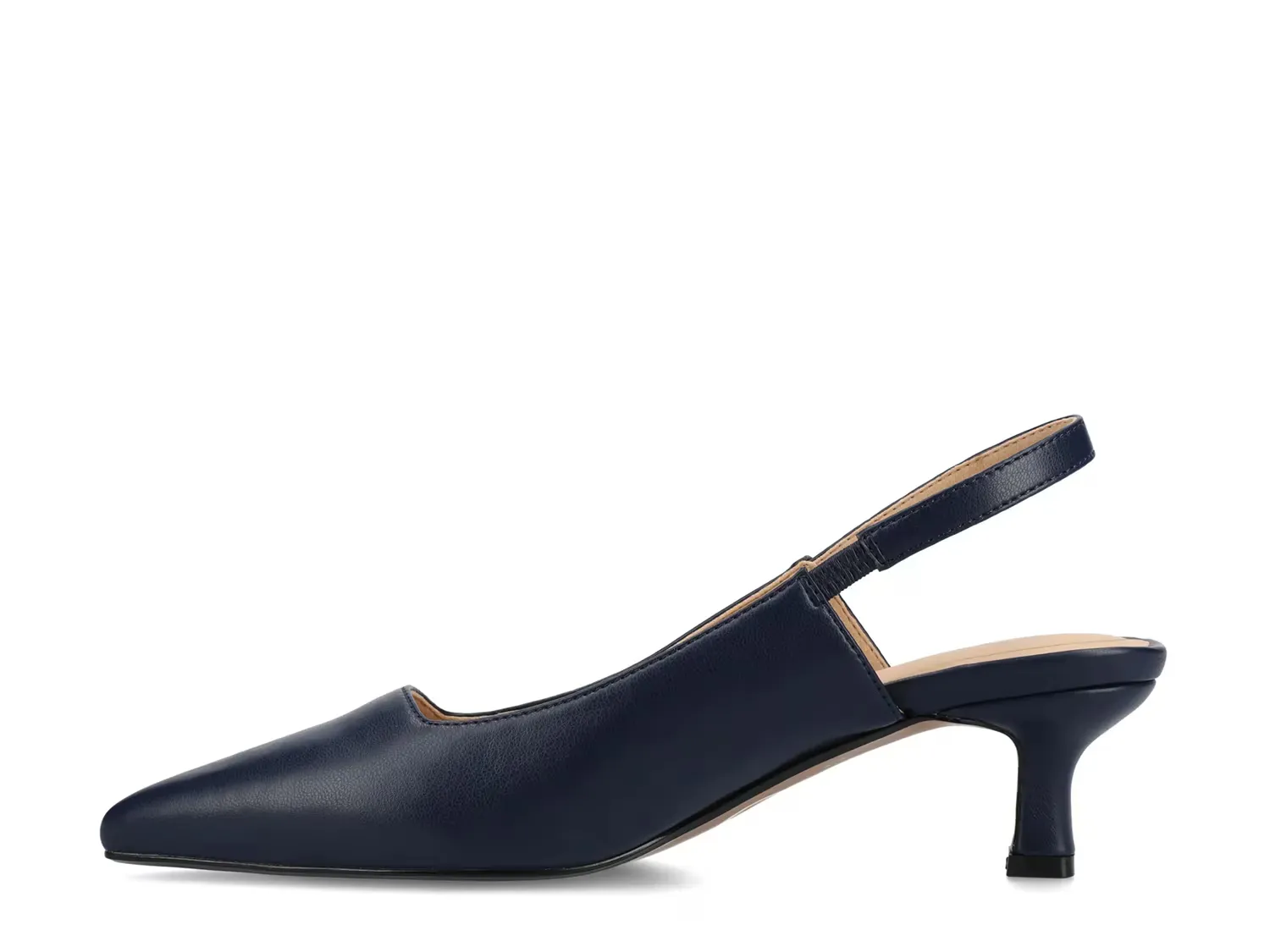 Сохраните простоту и стиль с насосом Paulina от Journee Collection. Этот элегантный ботинок легко снимать и надевать, благодаря дизайну с ремешком на пятке, модному каблуку-кинжалу и острому носу.