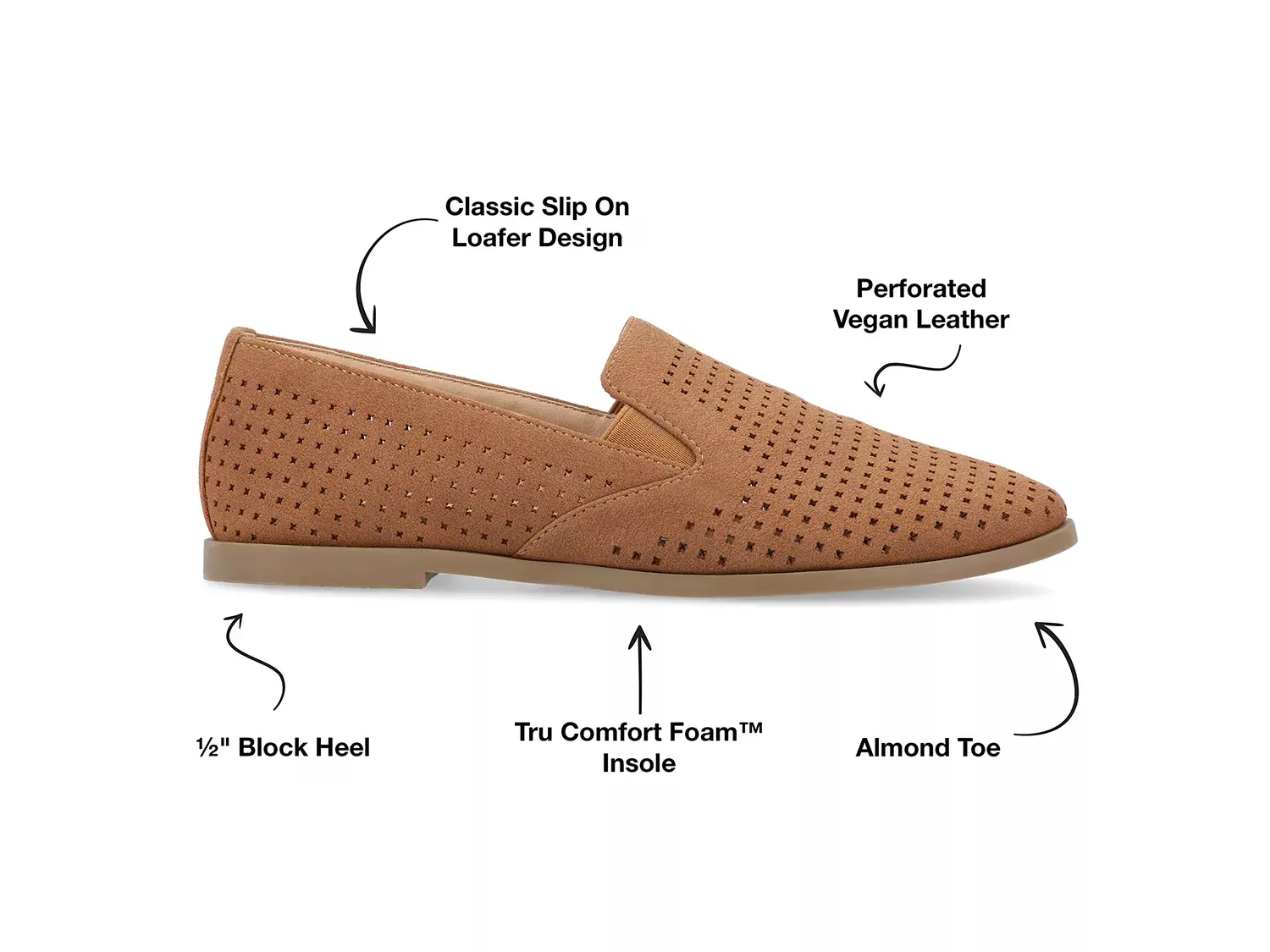 Совершенствуйте свой расслабленный образ на выходных с лоферами Lucie от коллекции Journee. Эта модель с удобным верхом из перфорированной ткани, двойными вырезами по бокам и стелькой из 4-мм Comfort Foam обеспечивает надежную поддержку.