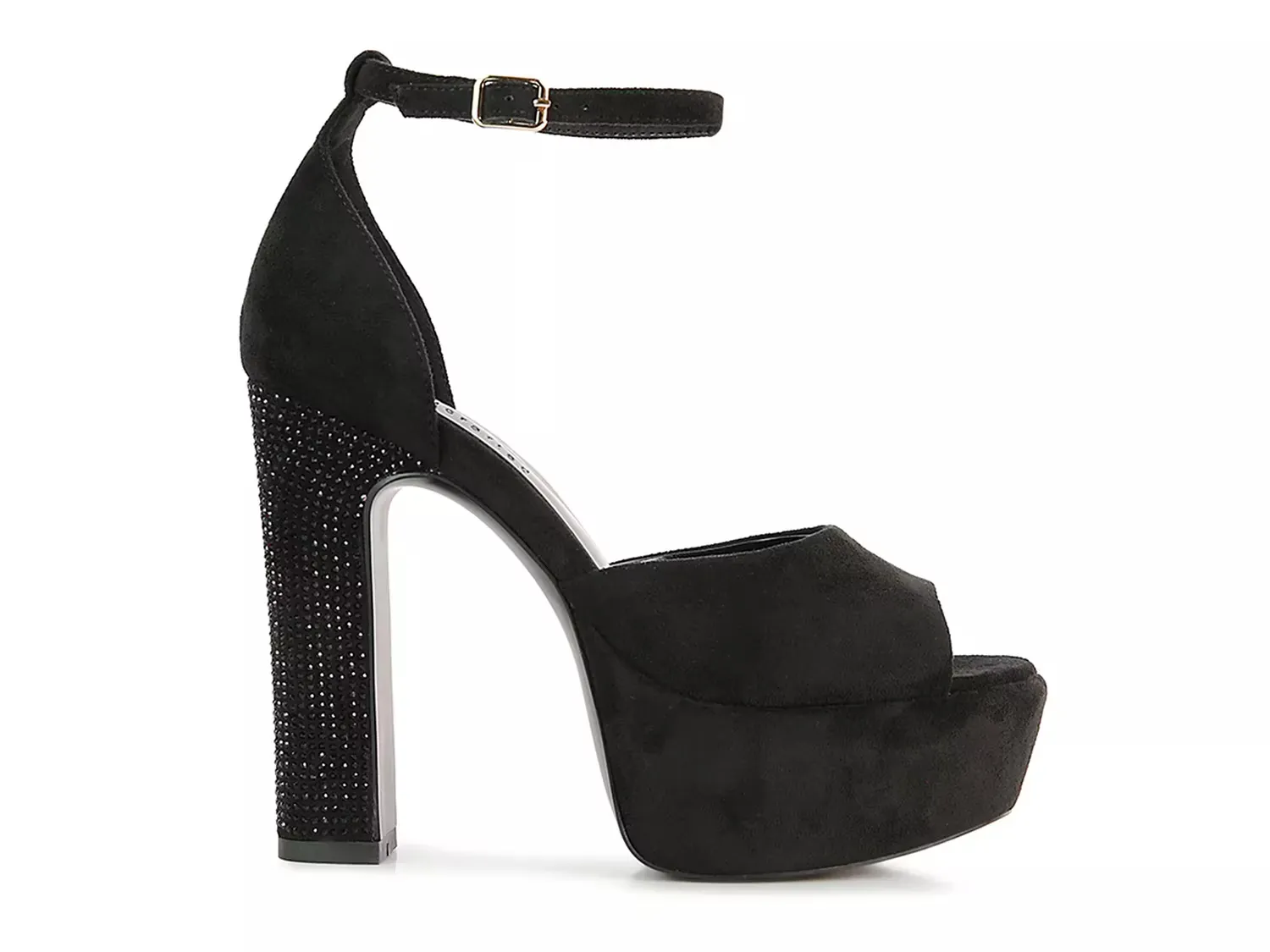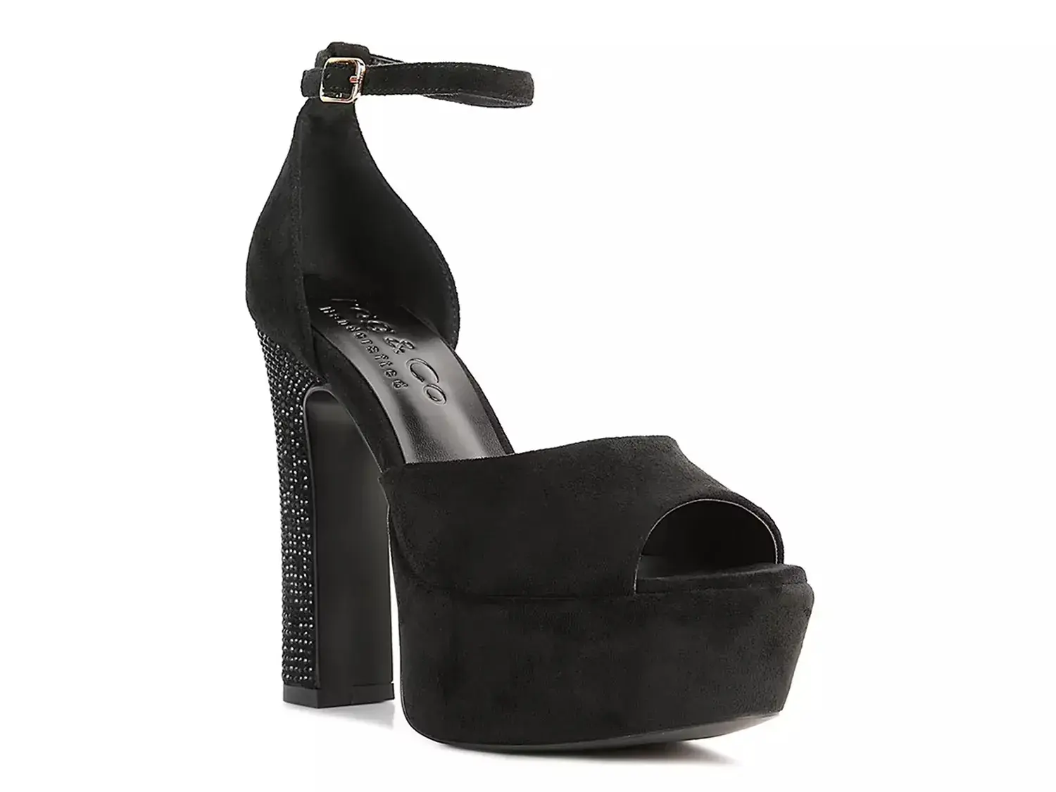 Добавьте немного гламура в ваш вечерний образ с помощью платформенных сандалий Beaty от Rag & Co. Блестящий блок-кабель, украшенный стразами, и толстая платформа делают эти сандалии с открытым носом одновременно стильными и привлекательными.