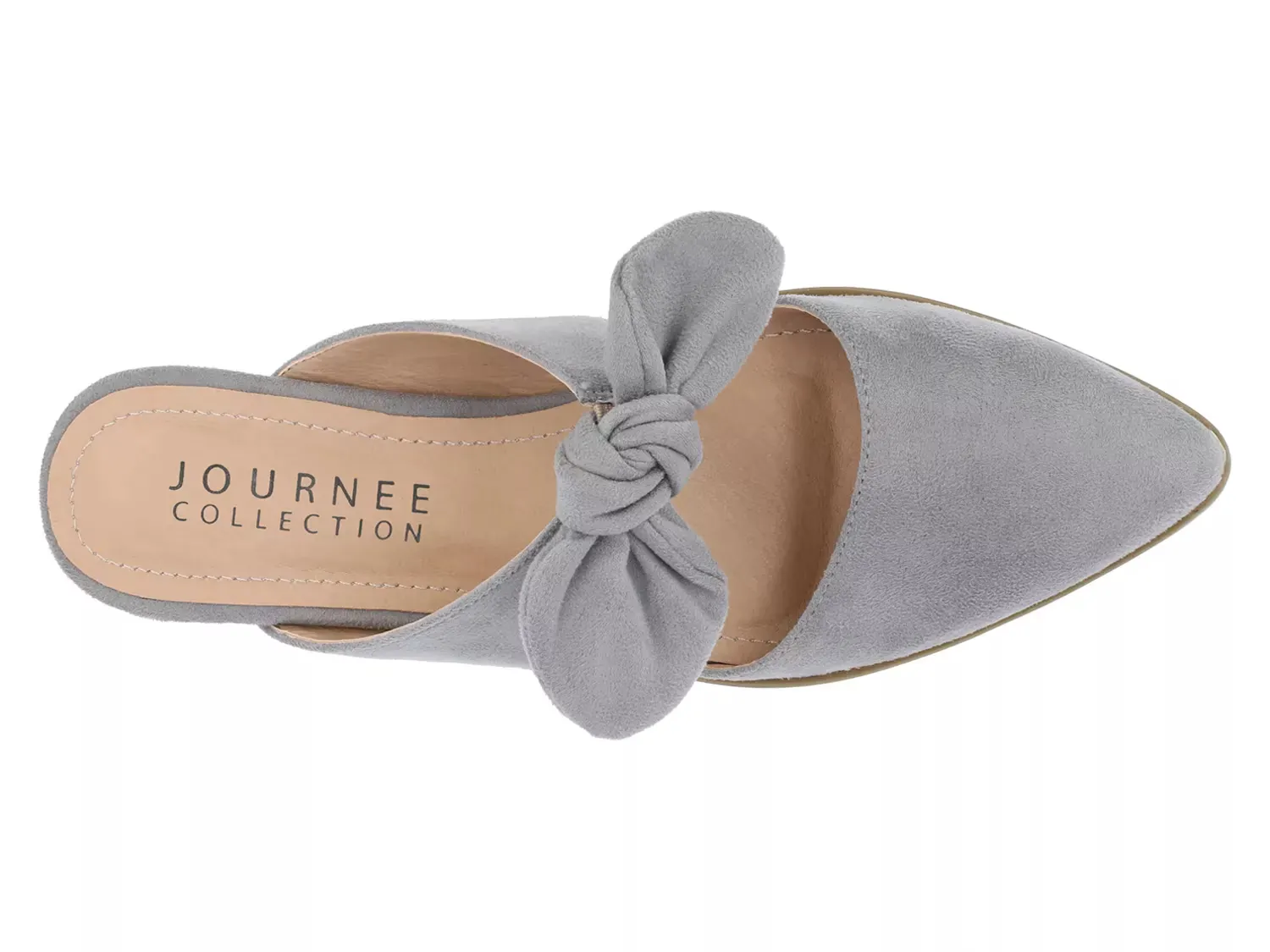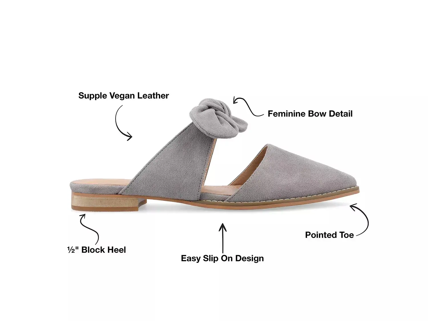 Муле Telulah из коллекции Journee излучает женственный шарм. Эти слайды имеют стильный заостренный носик и украшены аккуратной ремешком с бантом, что придает дополнительную текстуру джинсам или платьям миди.