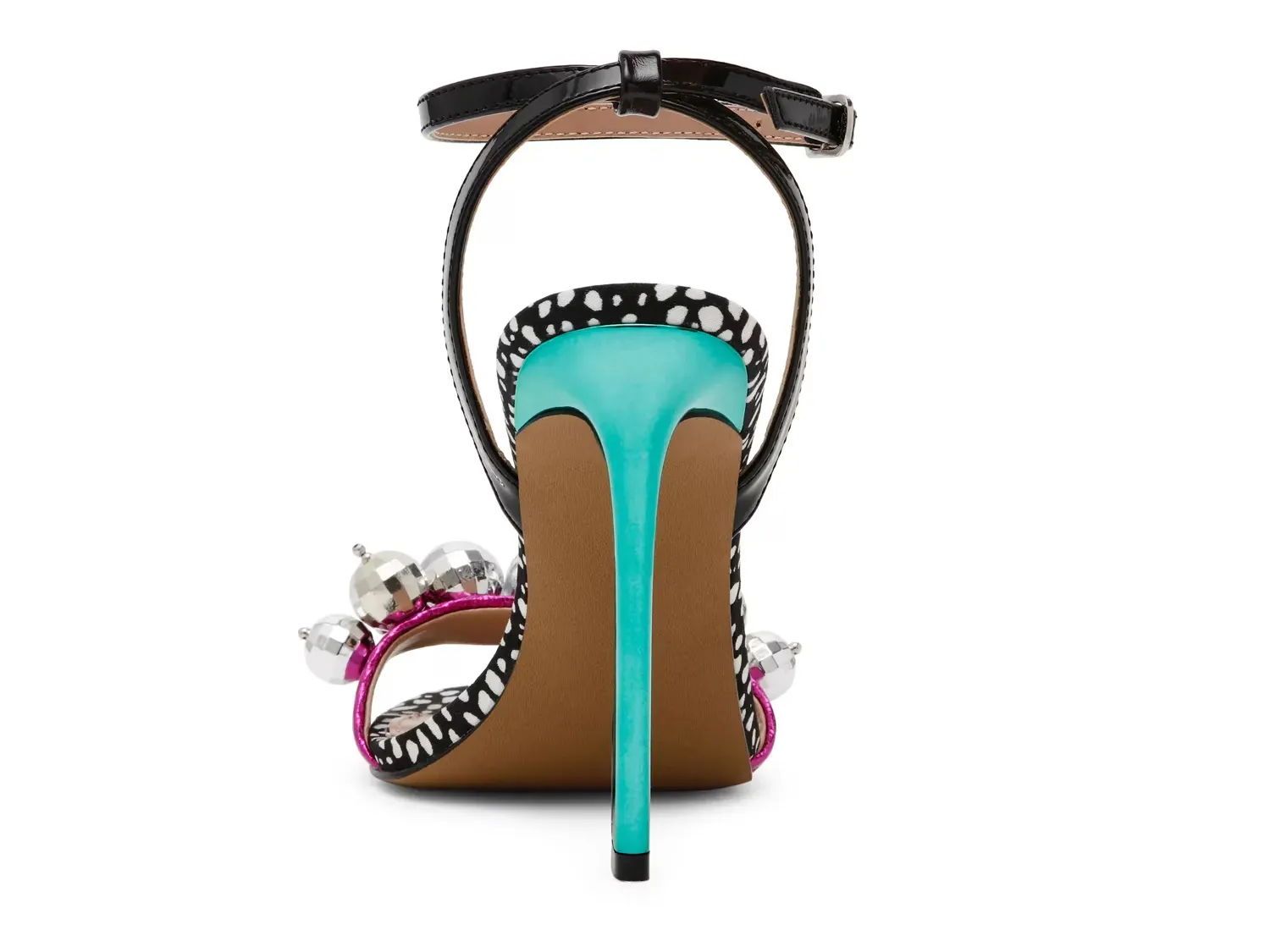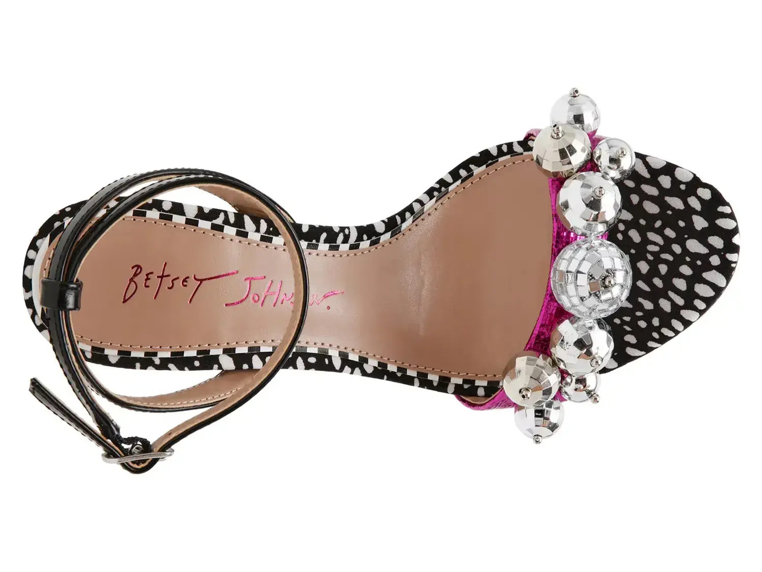 Выразите свою внутреннюю диву в сандалиях Betsey Johnson Ellyy. Изящный каблук, акценты в стиле диско и многоцветная схема привлекают внимание и оживляют ваш наряд для вечеринки.