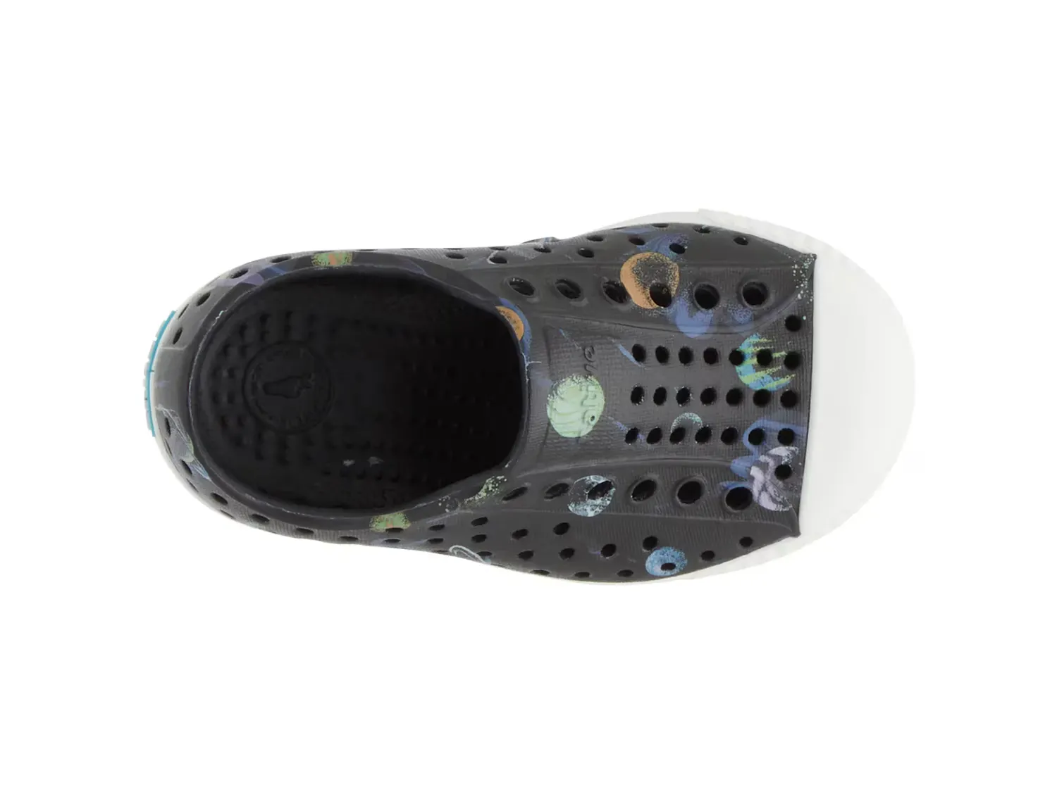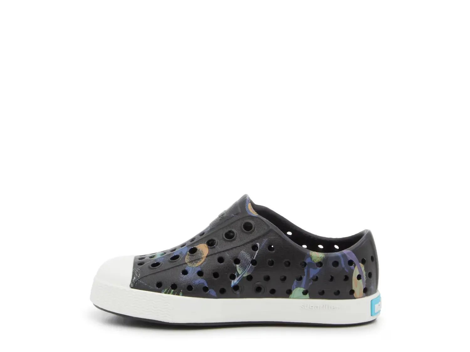 Слипоны Jefferson от Native просто за гранью! Эта повседневная пара с перфорированным дизайном для воздухопроницаемости, легким доступом и классическим силуэтом. Украшены игривыми графиками, представляющими разные планеты для звездного эффекта!