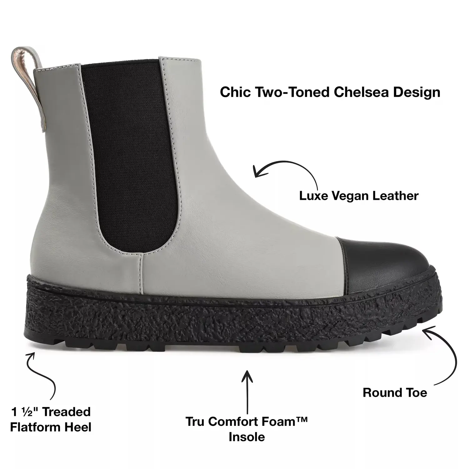 Добавьте множество стиля в ваш зимний образ с ботинками Jenie Chelsea от Journee Collection. Изготовленные в высоком профиле, эти веганские синтетические ботинки имеют эластичные вставки и заднюю петлю для легкого надевания, а также стельку из Tru Comfort Foam для комфорта. Благодаря протекторами подошвы с ярко выраженным рисунком, вы можете уверенно ходить даже по скользким дорогам.