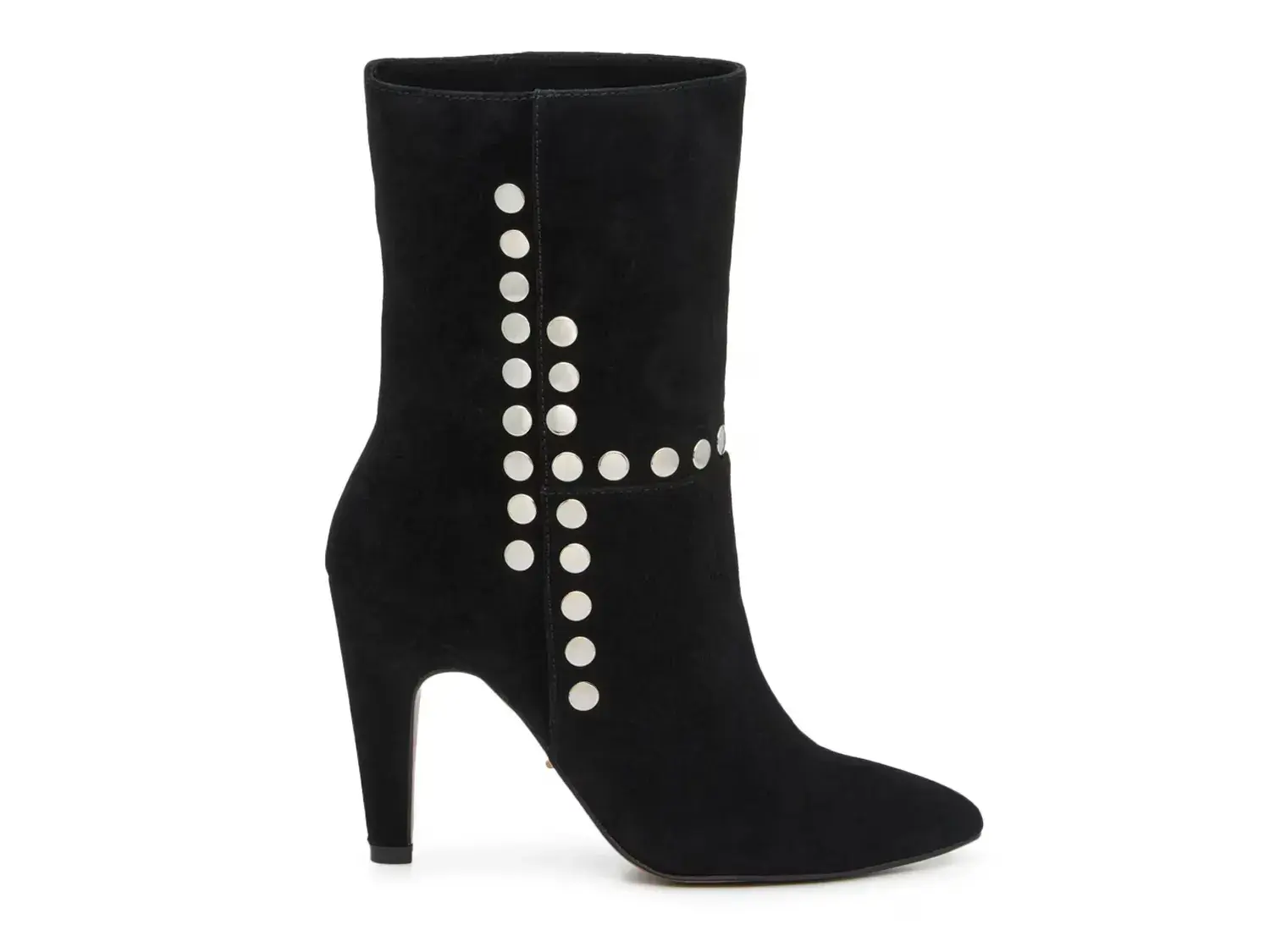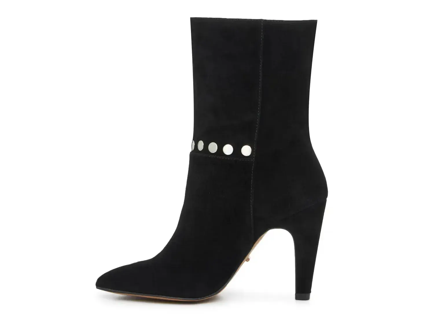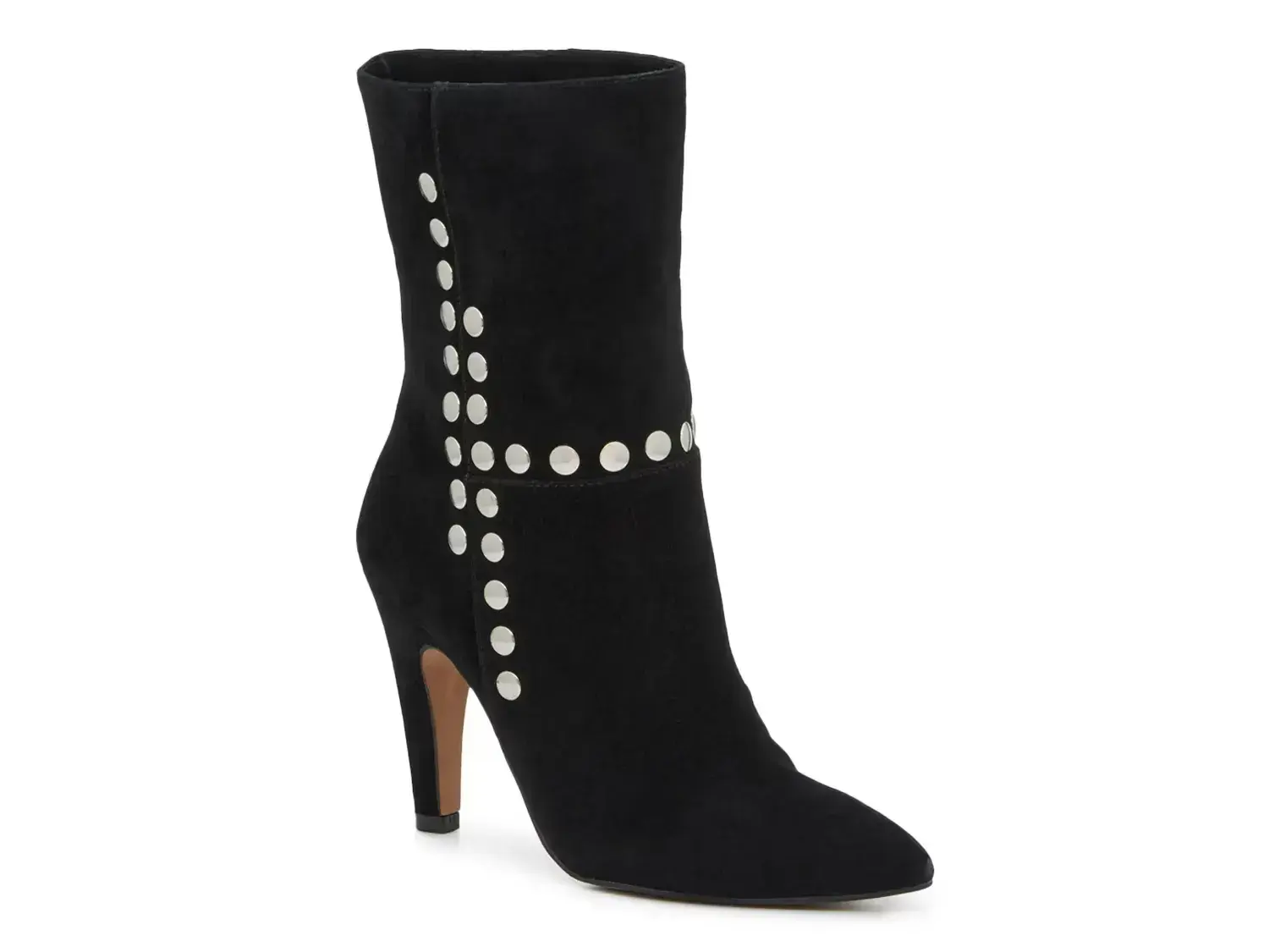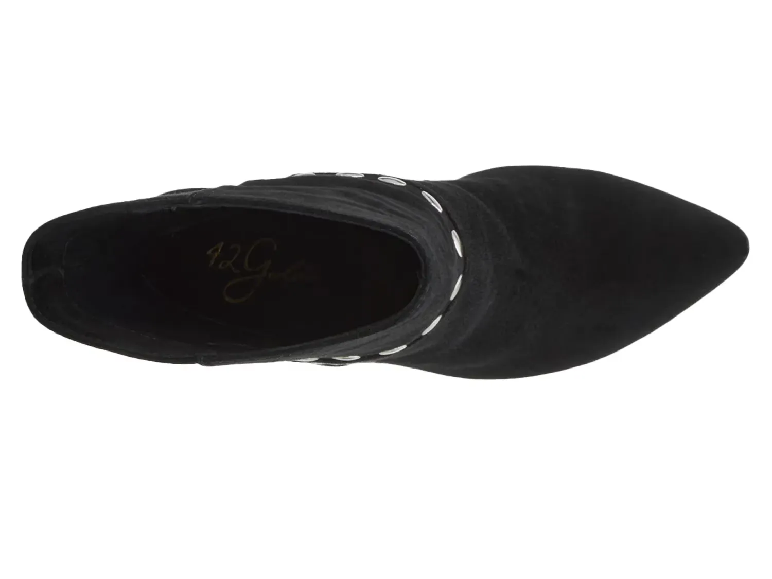 Покажите свой стиль, надев ботильоны Konnie от 42 Gold. Эта пара из замши имеет классический средний голенище, элегантный заостренный носок и закрытый каблук. Завершены серебряными заклепками, которые привлекают внимание и добавляют дерзкий штрих.