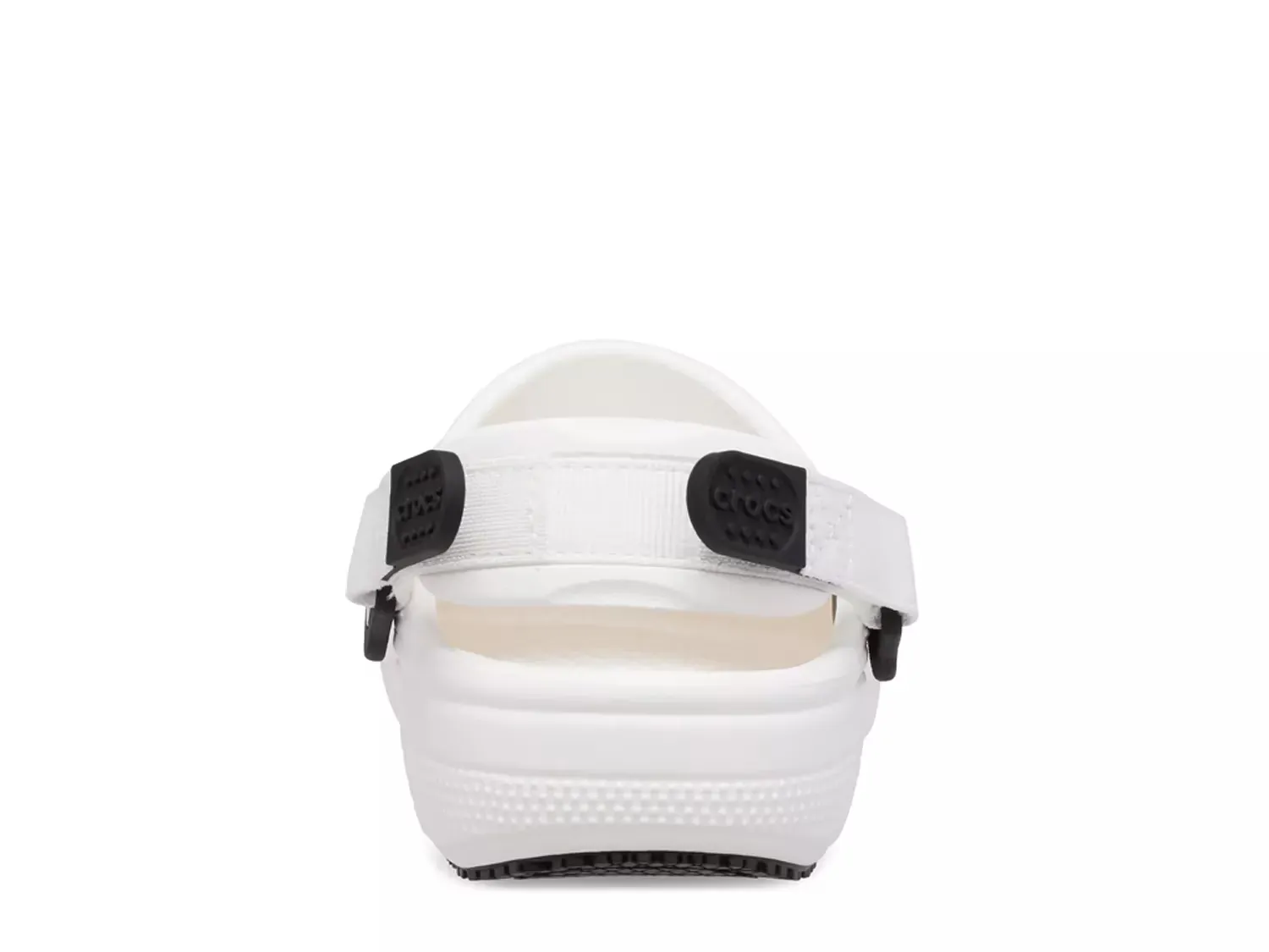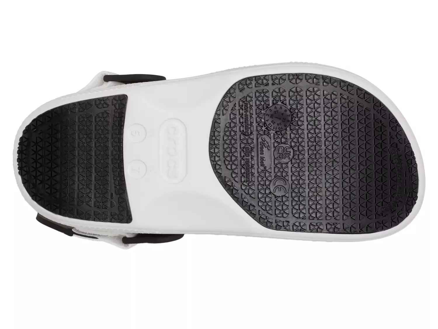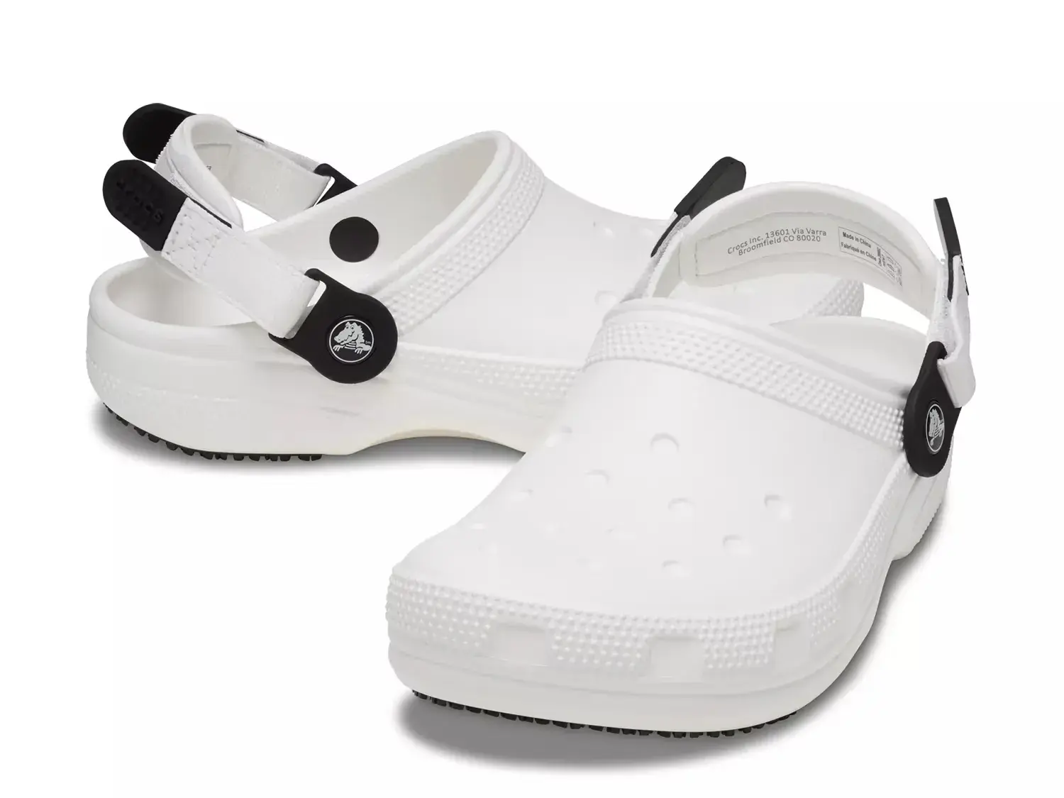 Оставайтесь в безопасности в рабочей модели Crocs Classic Work. Водонепроницаемый верх, закрытый нос, поворотный и регулируемый ремешок, 360-градусный комфортабельный дизайн Iconic Crocs и противоскользящие подошвы Crocs Lock делают эту полностью формованную обувь обязательной для каждого. Кроме того, эта легкая модель прошла тестирование ASTM F2913-11, сертифицирована CE и соответствует или превосходит стандарты EN ISO 20347:2012, OB и SRC.