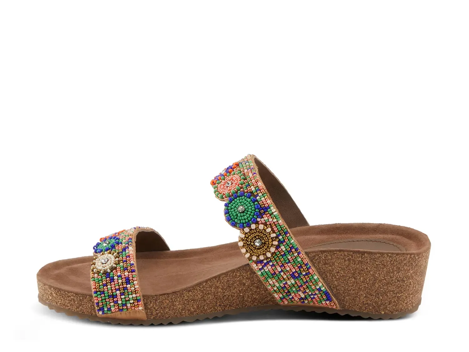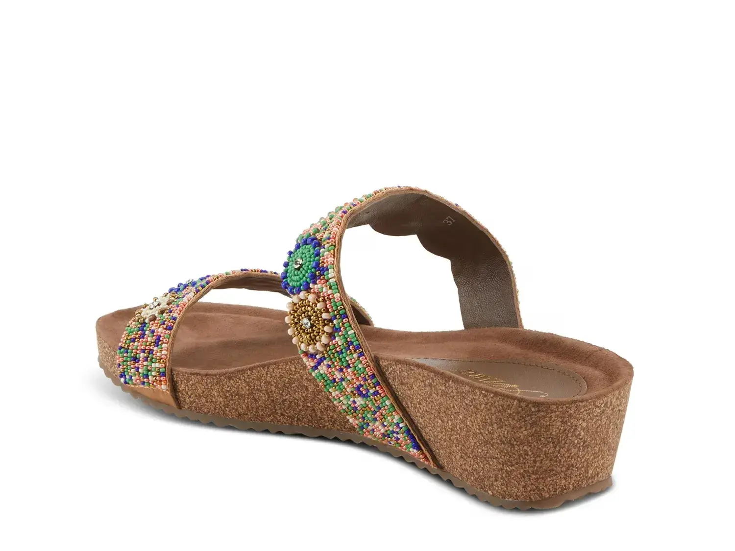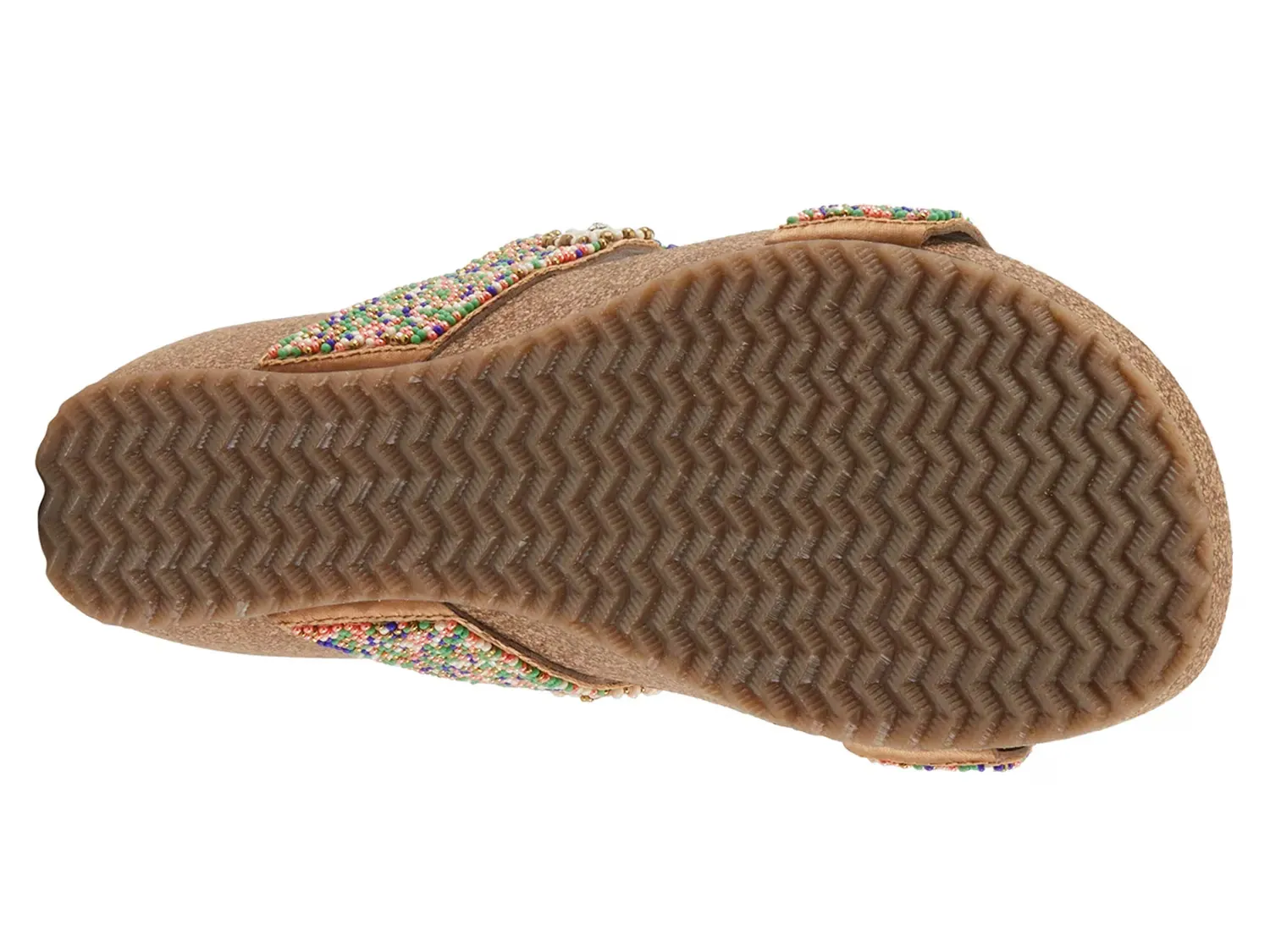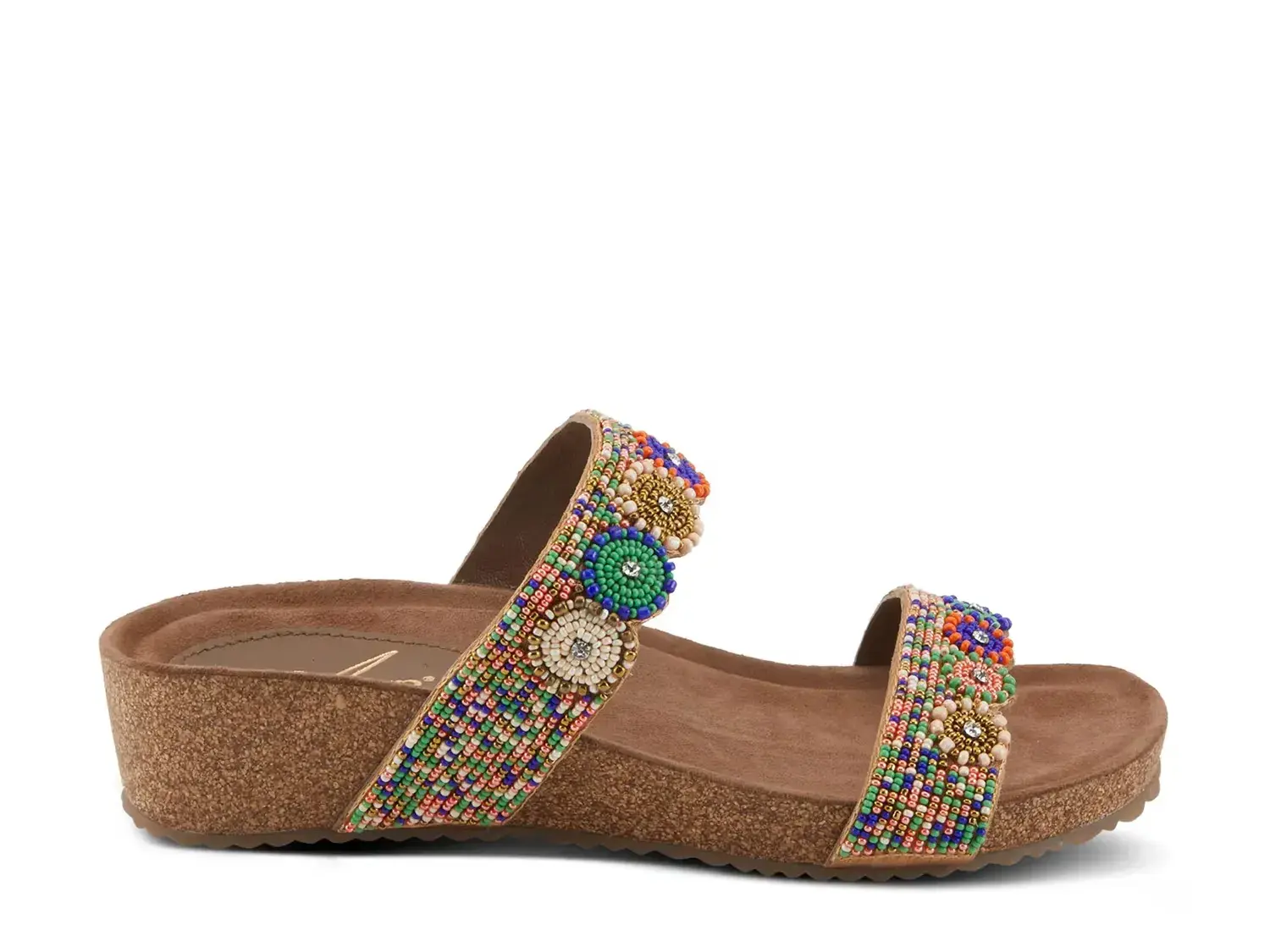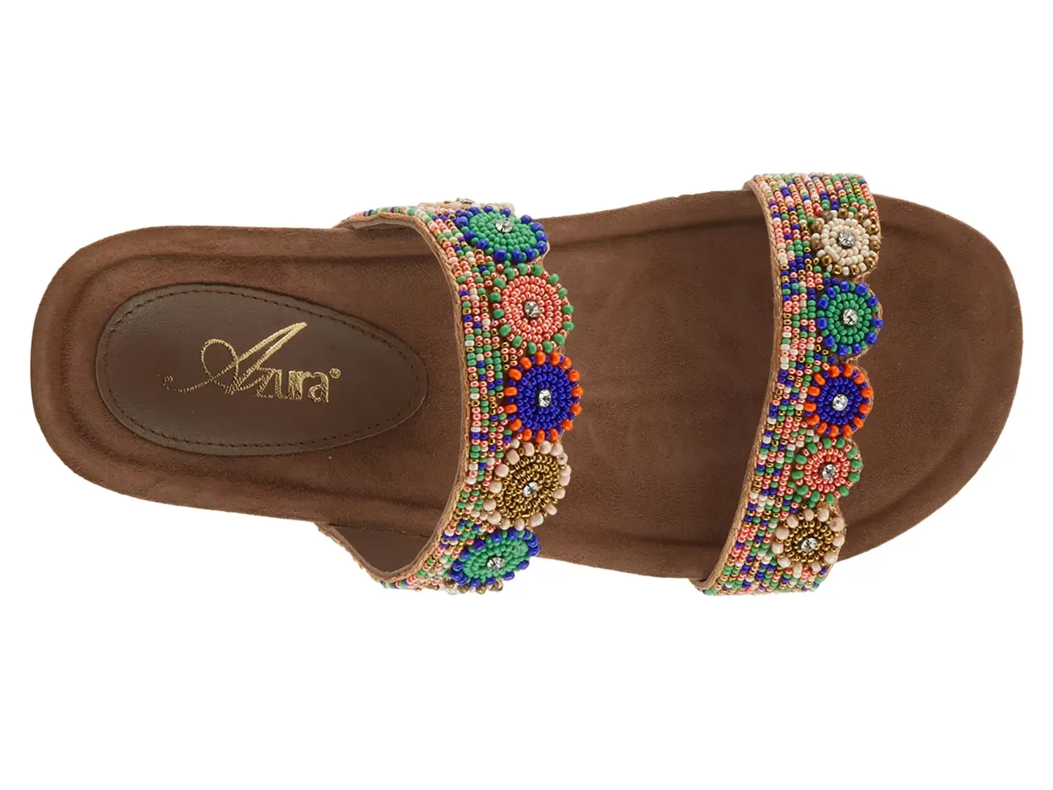 Смелые и яркие сандалии на платформе Bahama от Azura добавят богемный акцент к любому стилю. Эта пара выполнена в классическом дизайне с двойными ремешками, украшенными бусинами и стразами.