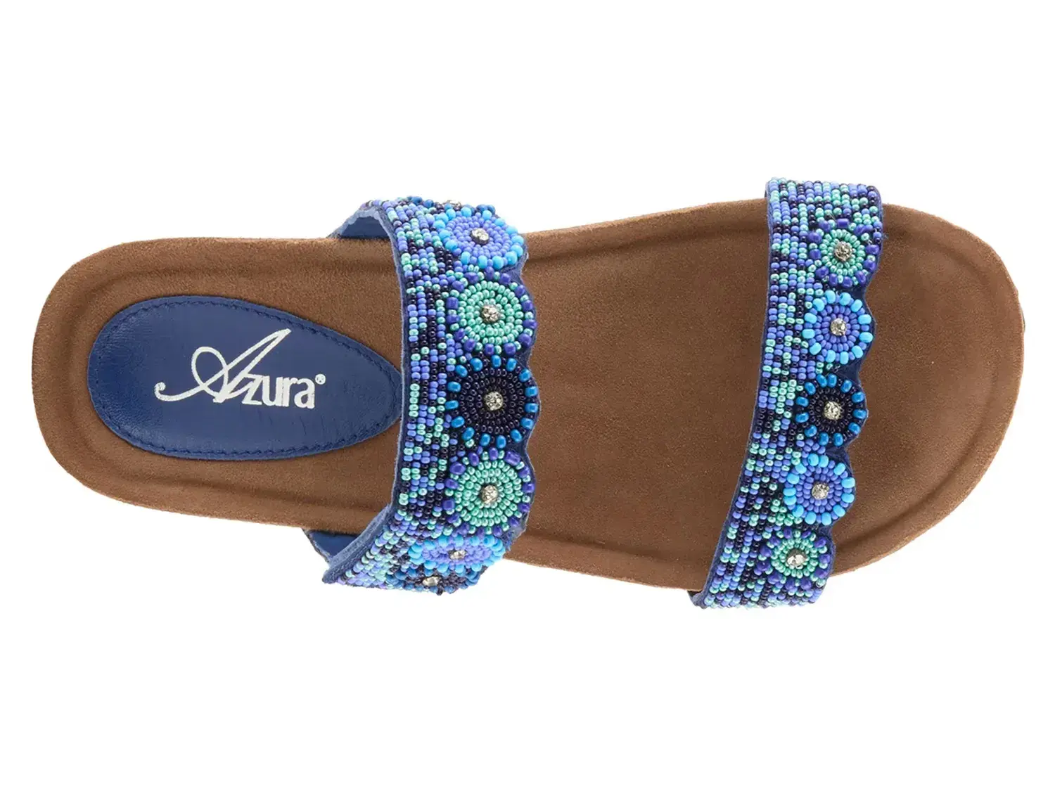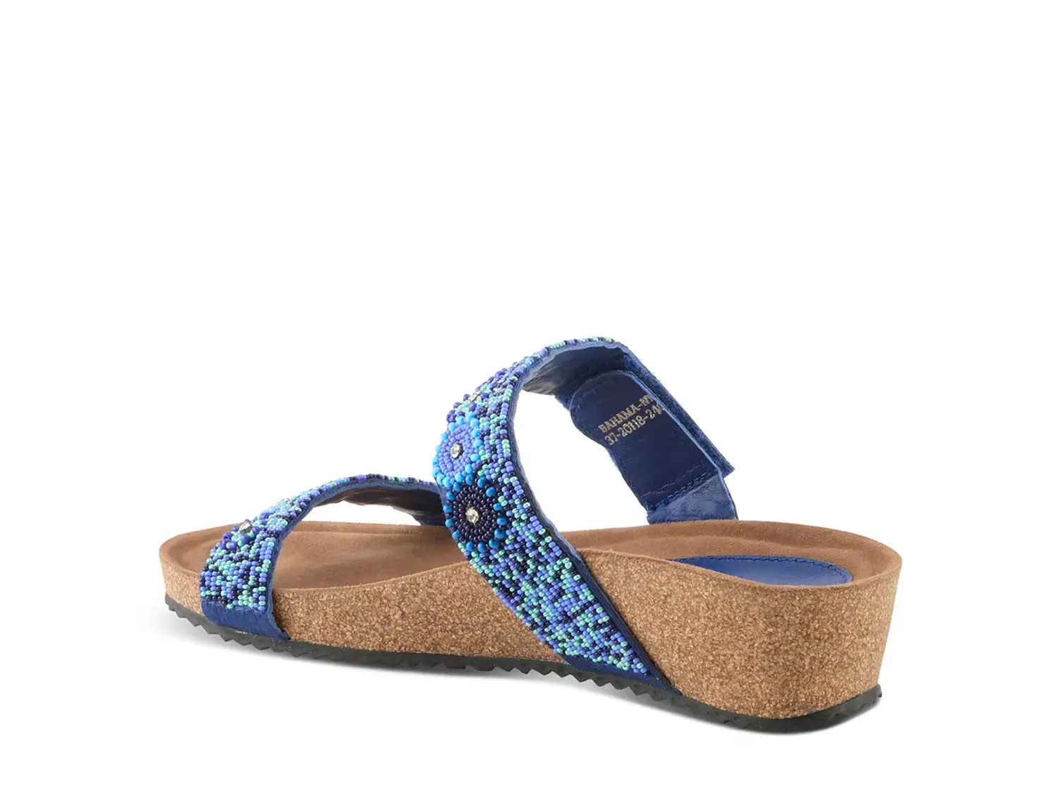 Смелые и яркие сандалии на платформе Bahama от Azura добавят богемный акцент к любому стилю. Эта пара выполнена в классическом дизайне с двойными ремешками, украшенными бусинами и стразами.