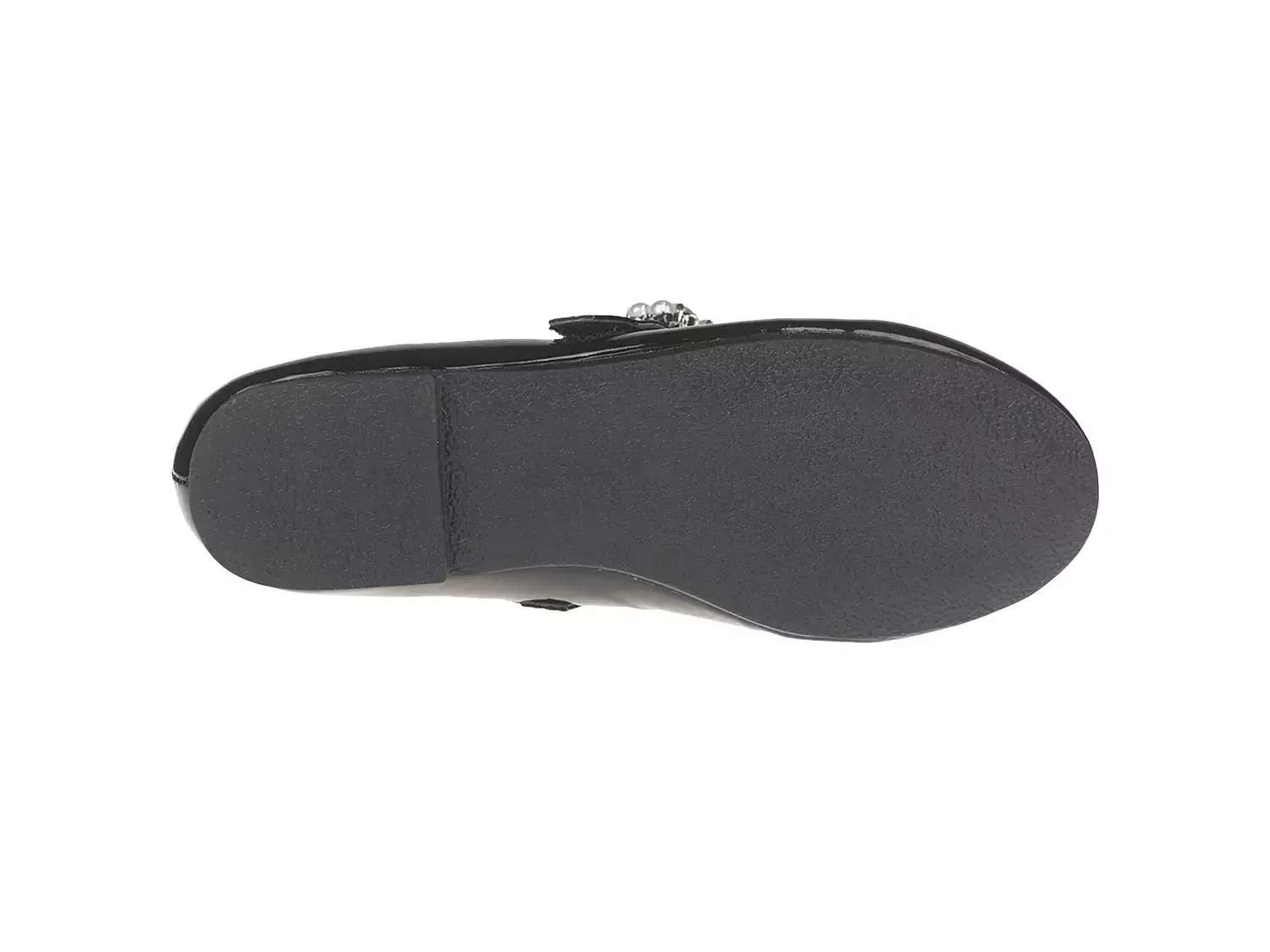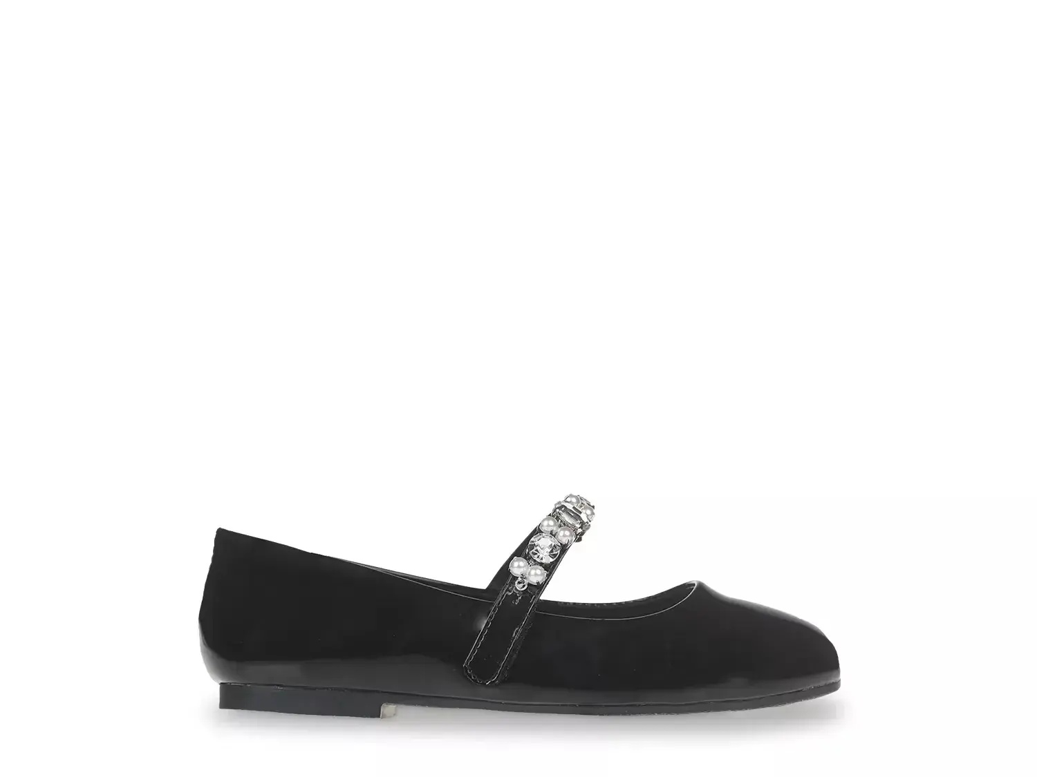 Подчеркните формальный образ вашего малыша с помощью блестящих балеток от Vince Camuto. Элегантная форма контрастирует с блестящим стразовым ремешком, который добавляет звездного шарма.