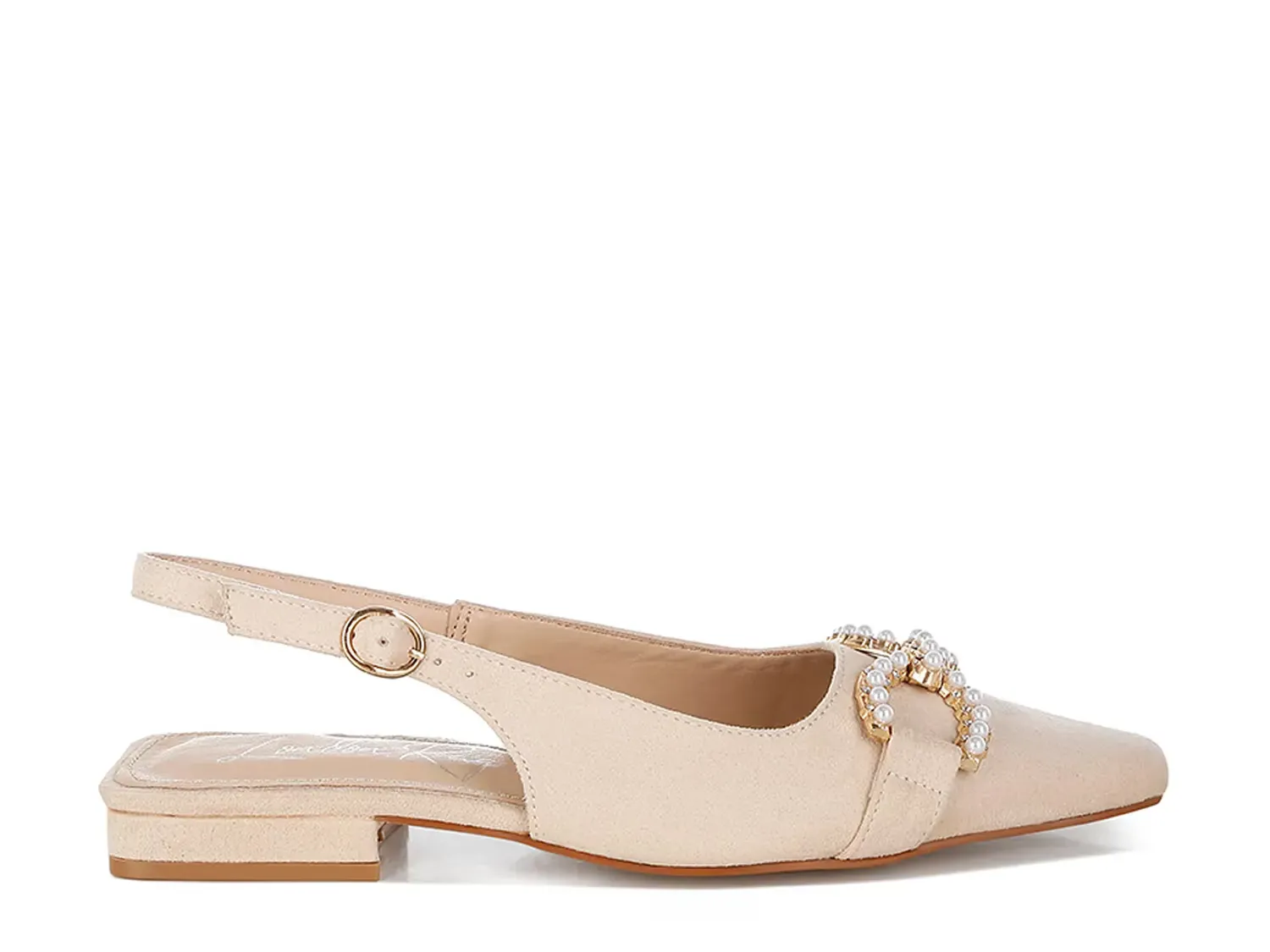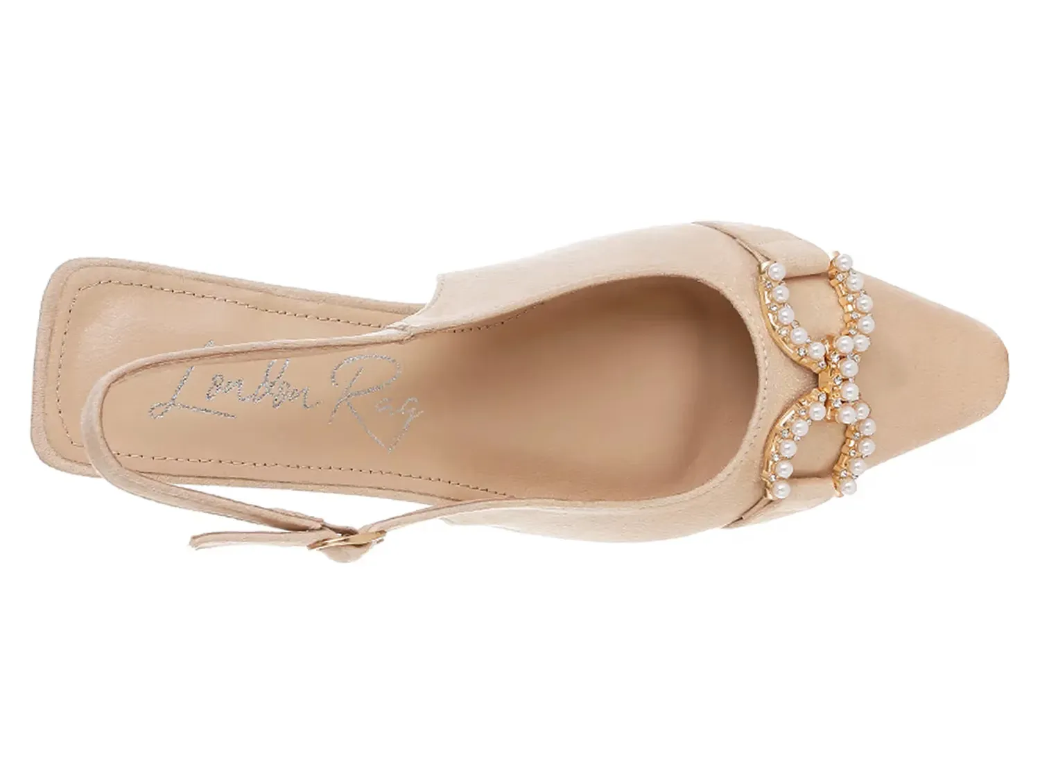 Наслаждайтесь стильной элегантностью моделью Salova от London Rag. Этот элегантный сандалет с открытым пяткой имеет скошенный носок и украшение с жемчужинами на верхней части.