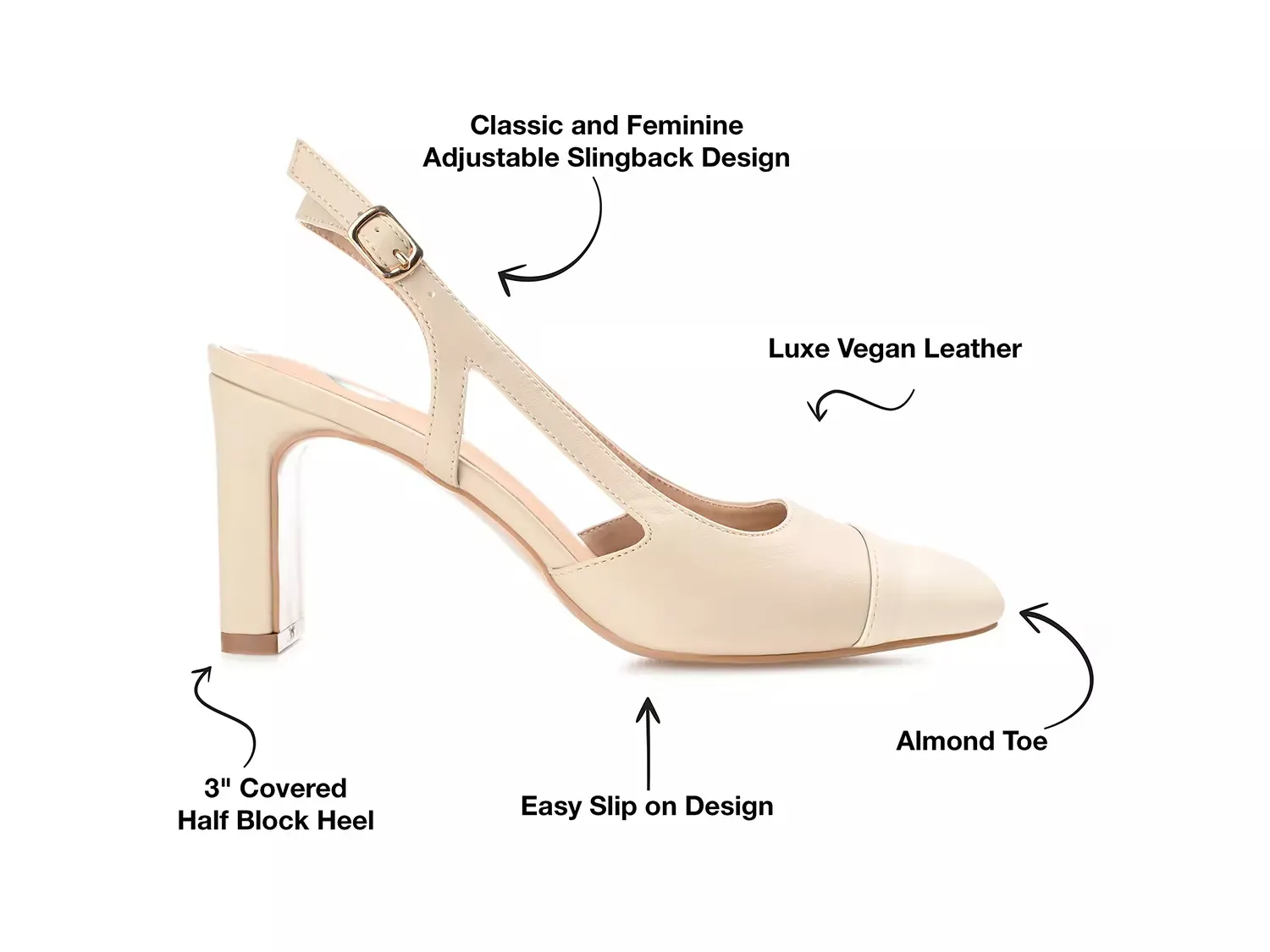 Создайте утонченный образ в туфлях Reignn от Journee Collection. Высокий полублокированный каблук, гладкий носок в форме миндаля и мягкая амортизированная стелька - это туфли с открытой пяткой, в которых вы будете чувствовать себя так же хорошо, как выглядите.