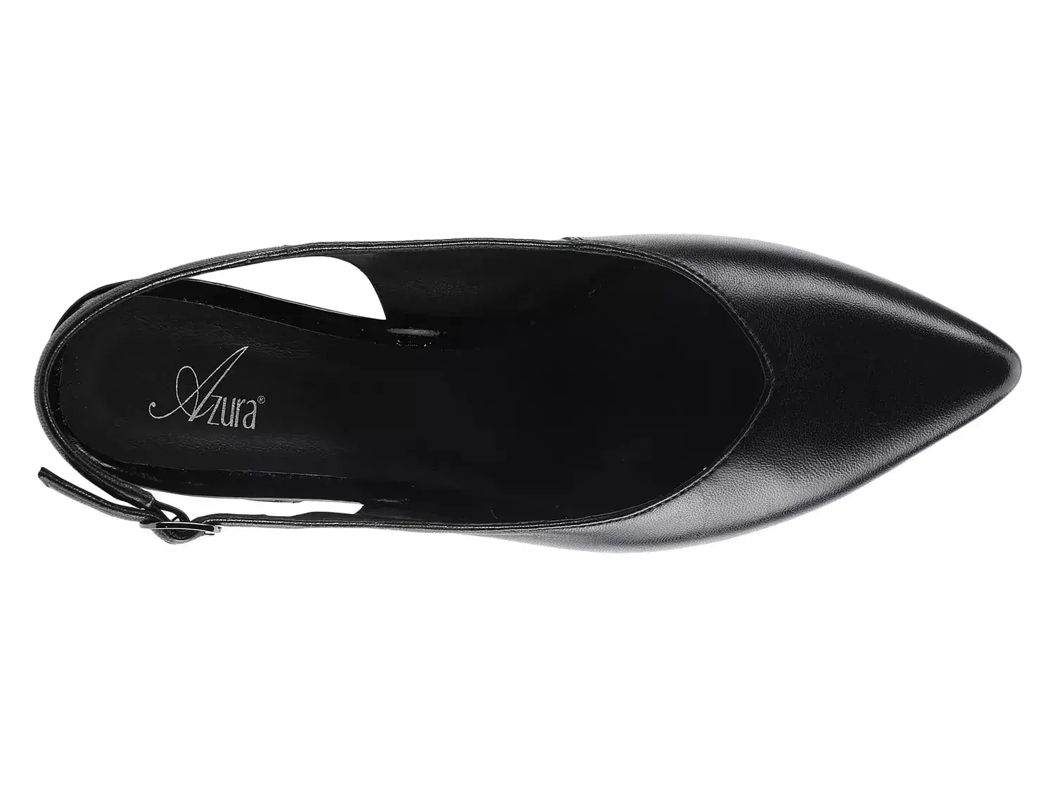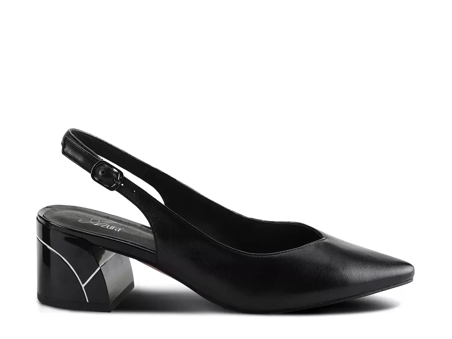 Красивые сандалии от Azura имеют классический силуэт с неожиданным смелым поворотом. Архитектурно скошенный толстый каблук поднимает эти вечерние сандалии с заостренным носком и ремешком на пятке на новые высоты.