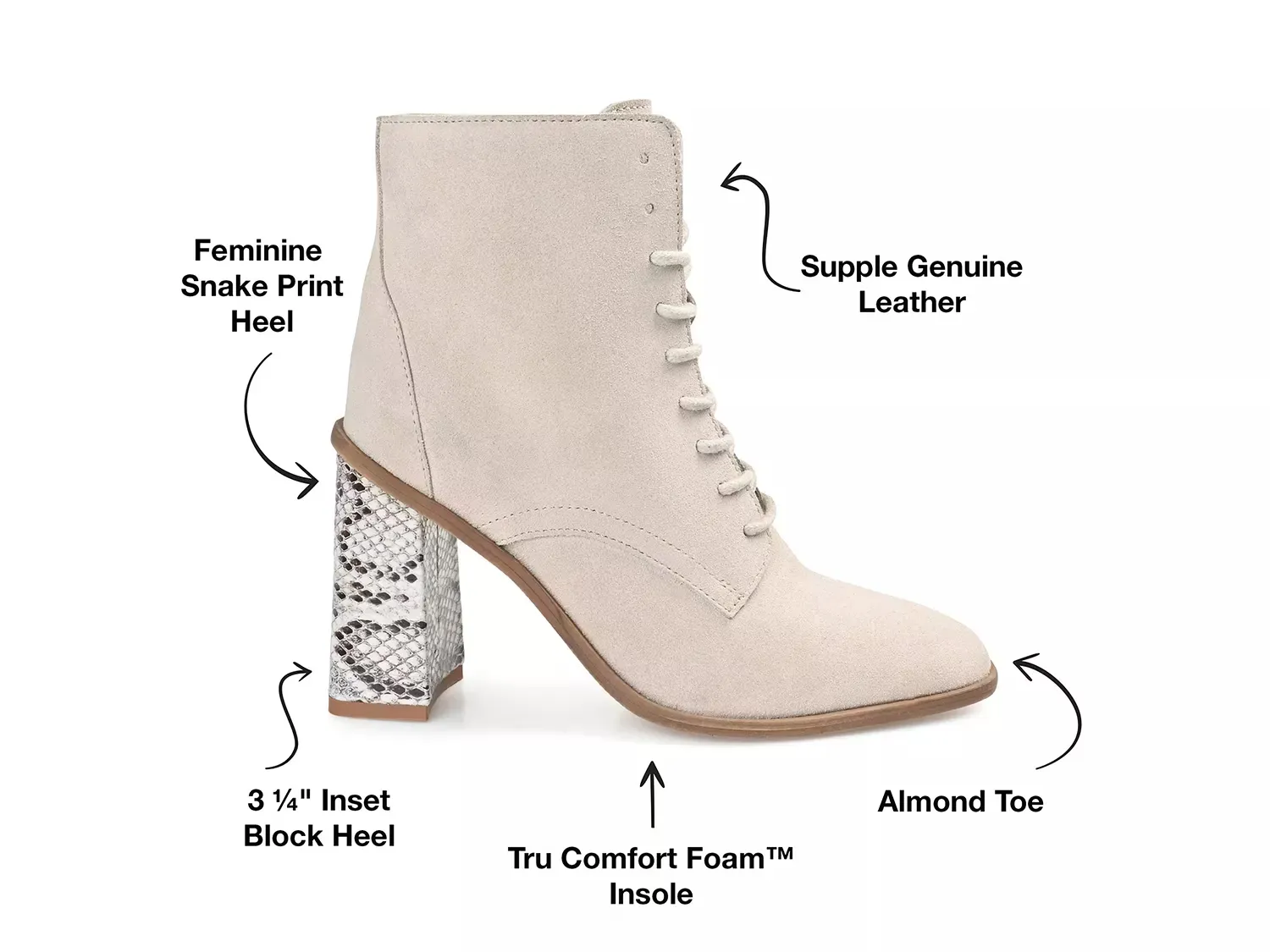 Покажите стильные образы, надев ботинки Journee Signature Edda. Эти ботинки на шнуровке выполнены из натуральной кожи и дополнены квадратным каблуком с змеиной текстурой, что подчеркивает их шикарный вид. Благодаря стельке из Tru Comfort Foam и памяти вы сможете наслаждаться комфортом в течение всего дня.