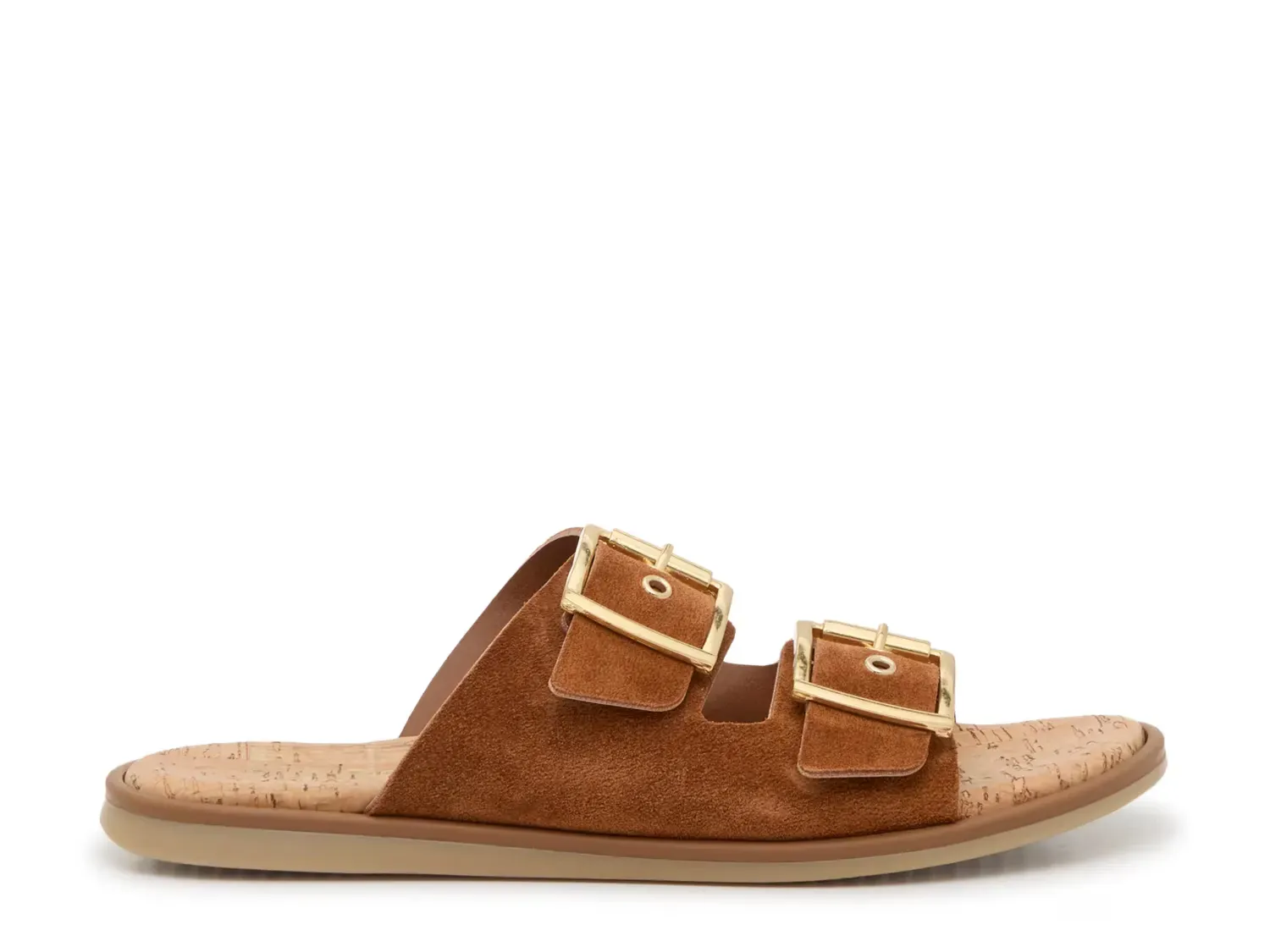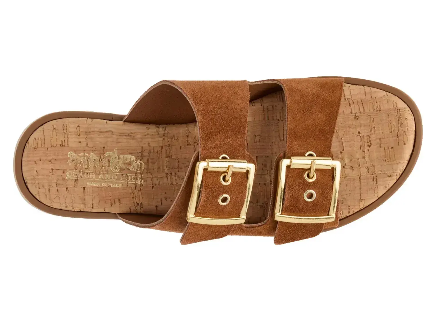 Скользните в сандалии Dallas от Coach & Four для повседневного обновления вашего образа в теплую погоду. Золотистые пряжки выделяются на замшевом верху, придавая стильный вид.