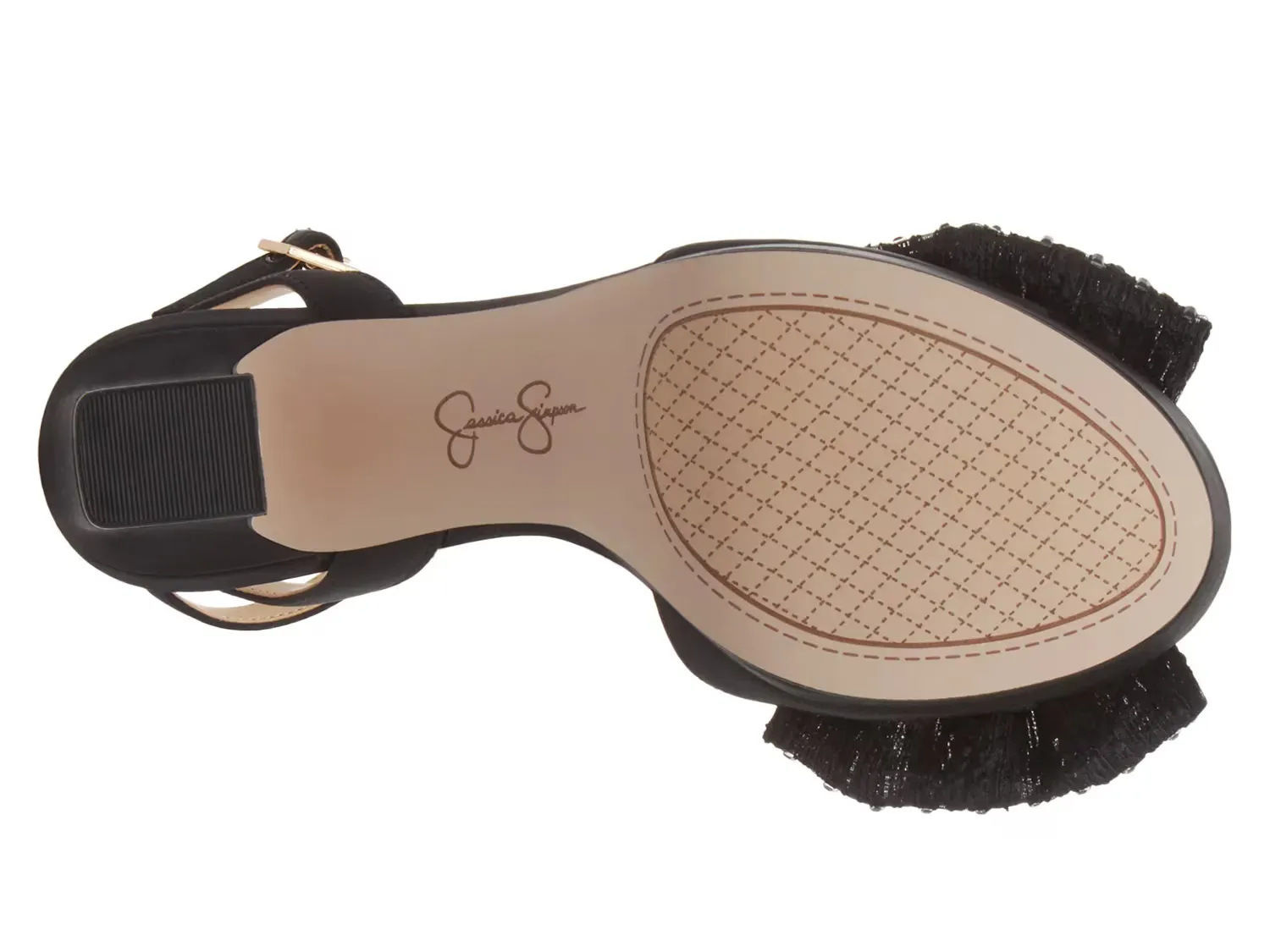 Завершите свой любимый официальный образ с женственным акцентом. Платформенные сандалии Aliza от Джессики Симпсон выполнены из гладкого сатина, имеют изящный ремешок на щиколотке и oversized бант, покрытый стразами.