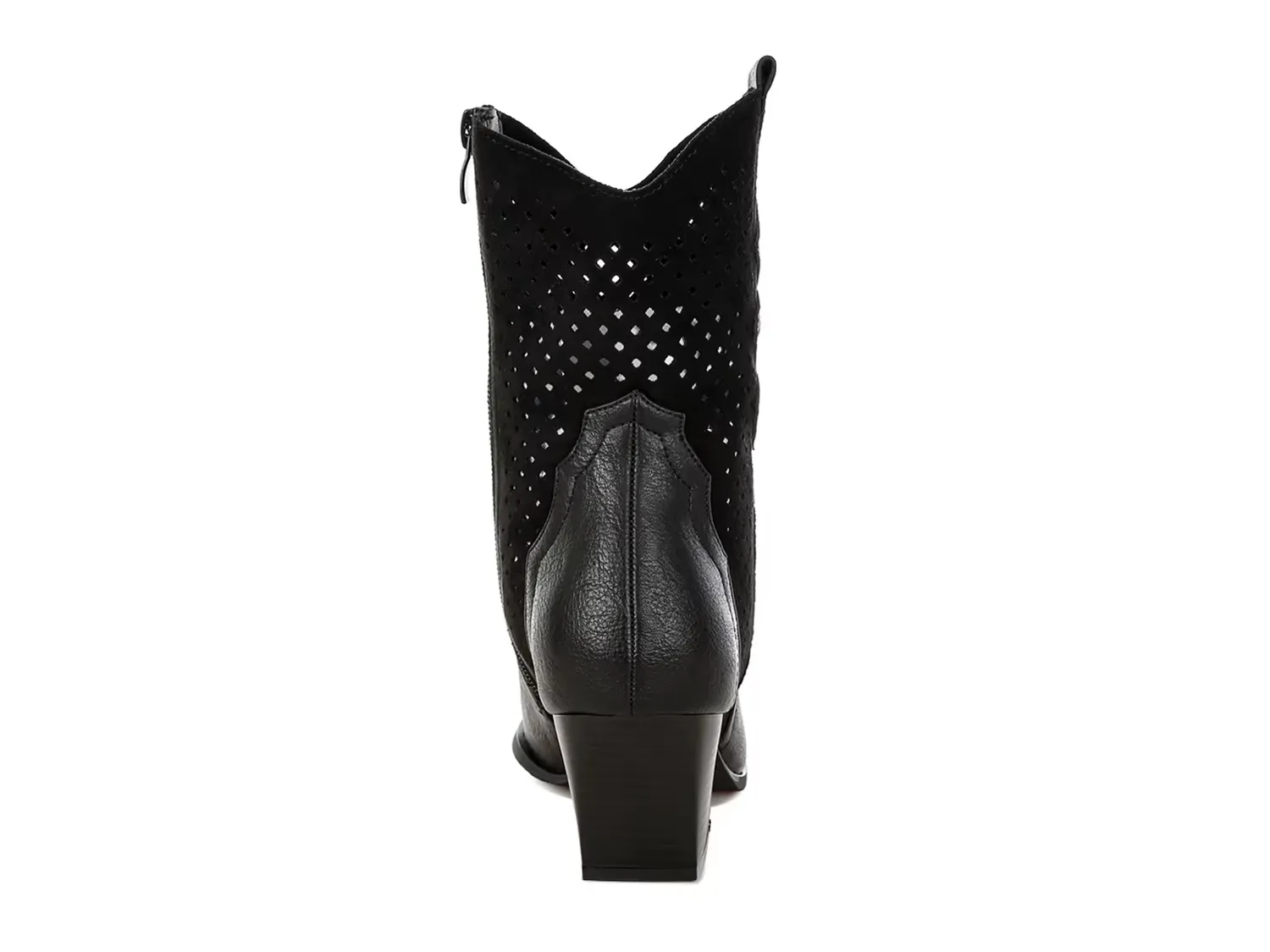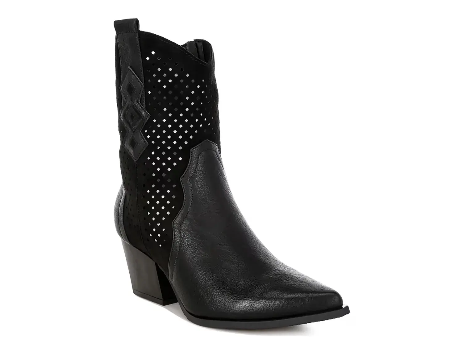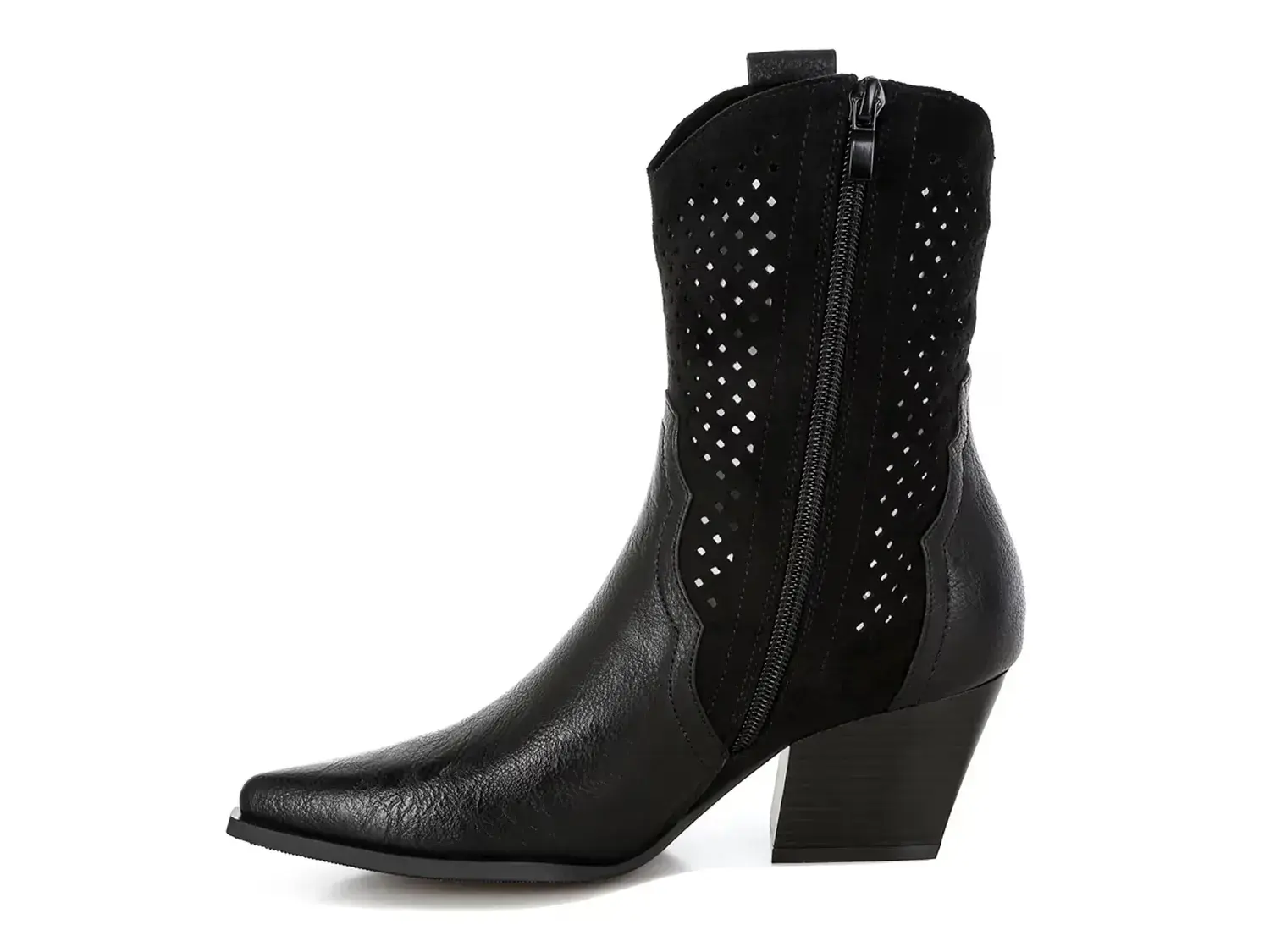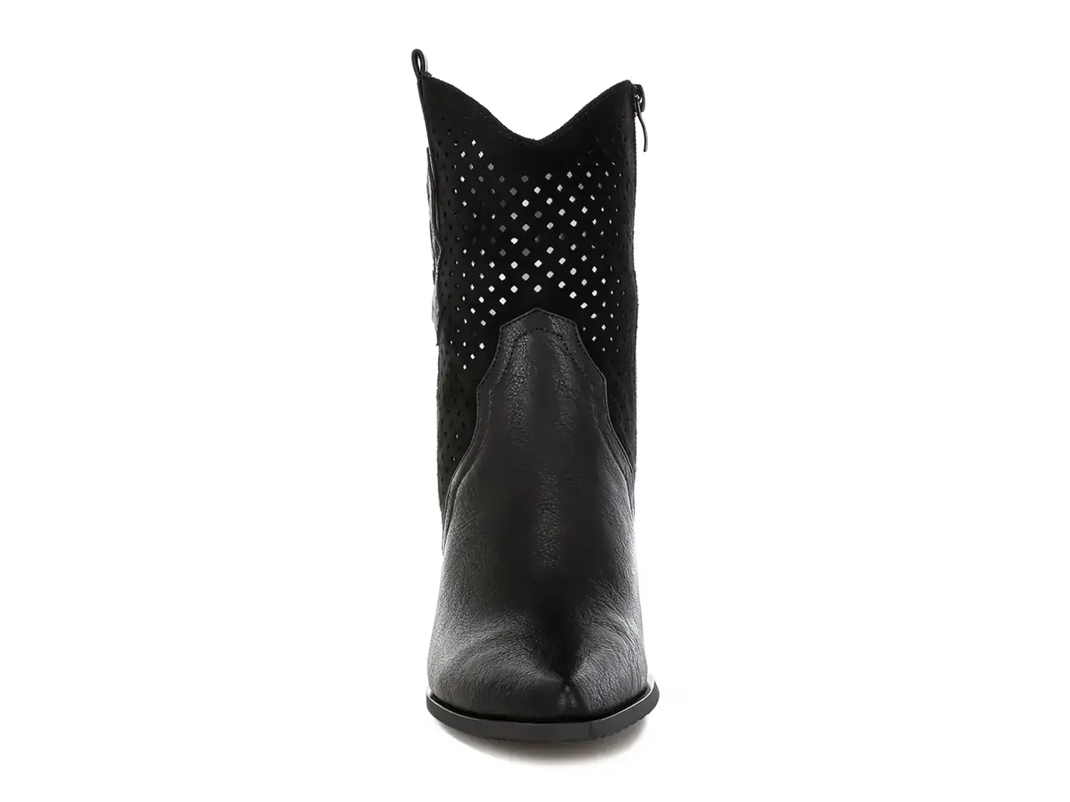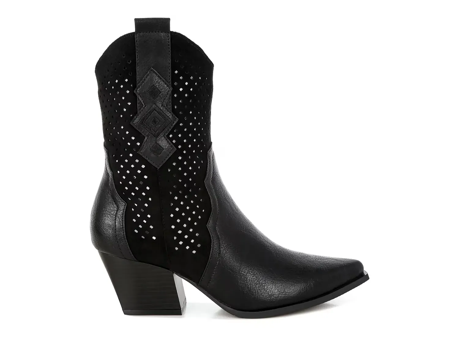 Добавьте немного гламура в расслабленный стиль с помощью ковбойских_boots_Prosia от London Rag. Изготовлены с каблуком в ковбойском стиле, сложной строчкой и подробными вырезами с серебристым металлическим оттенком снизу.