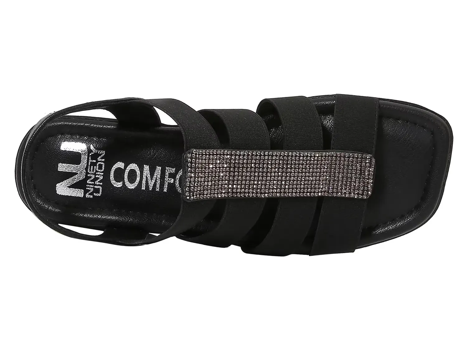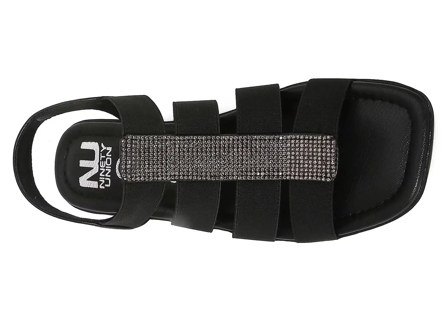 Наденьте стильные сандалии Sunset от Ninety Union для летнего образа. Украшение из страз привлекает внимание, а гладкий танкетка поднимает ваш наряд.