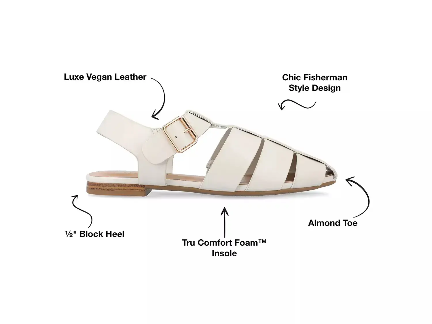 Получите этот стильный вид, гуляя по городу в сандалиях рыбака Cailinna от Journee Collection. Роскошный колготочный силуэт, элегантный миндальный нос, регулируемый ремешок с пряжкой, подошва из пены Tru Comfort и каблук в виде блока завершают этот плоский сандал.