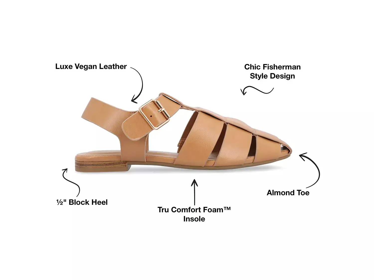 Получите этот стильный вид, гуляя по городу в сандалиях рыбака Cailinna от Journee Collection. Роскошный колготочный силуэт, элегантный миндальный нос, регулируемый ремешок с пряжкой, подошва из пены Tru Comfort и каблук в виде блока завершают этот плоский сандал.