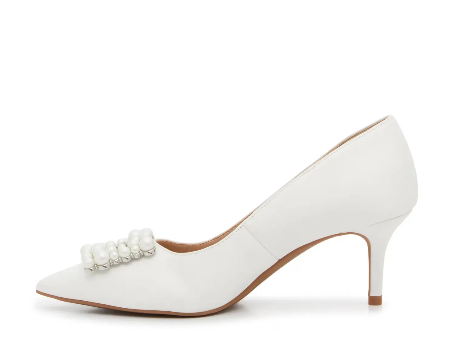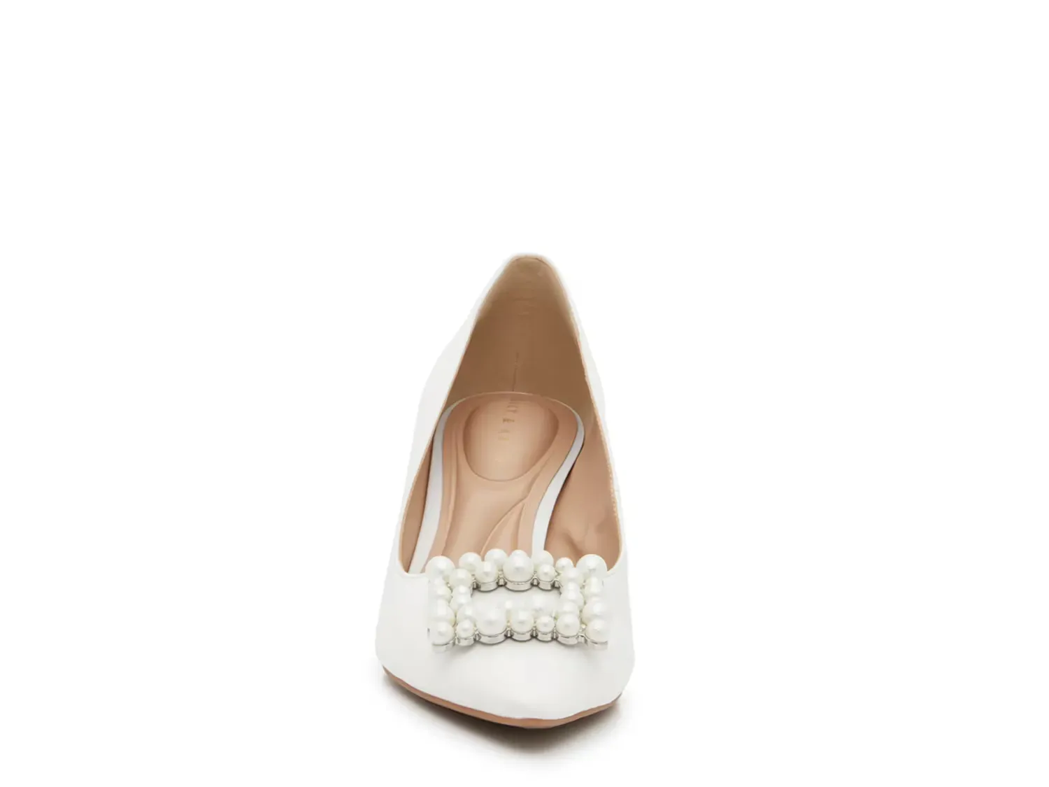 Освежите свой формальный гардероб с помощью туфель Radia от Kelly & Katie. Эта сатиновая пара украшена брошью с бусинами, что придает винтажный стиль и поднимает настроение.