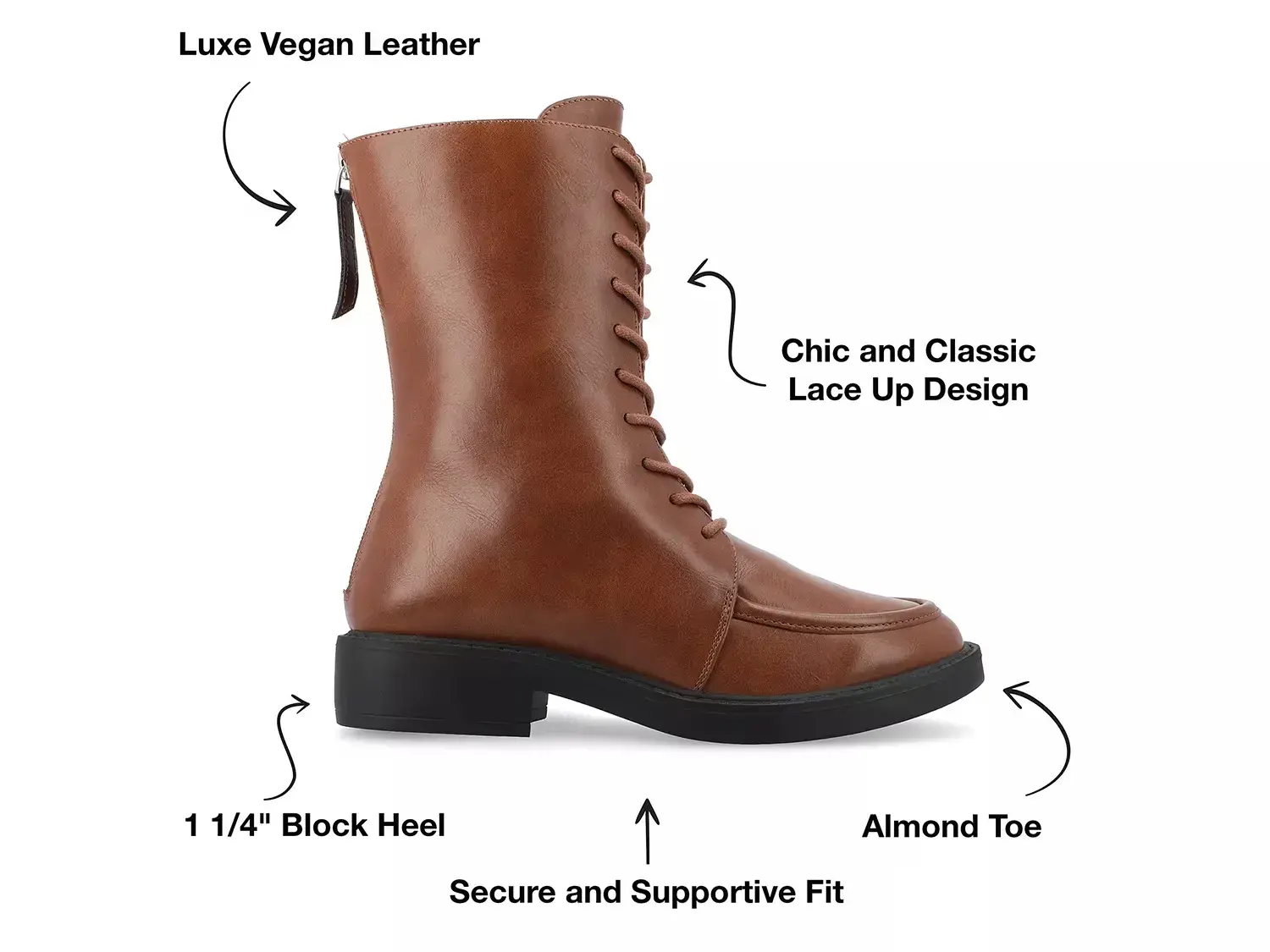 Ботинки Nikks от Journee Collection могут повысить ваш стиль. Эти экологичные ботинки с заостренным носком и каблуком-блоком имеют шнуровку спереди, что придает им шикарный, классический вид. Задняя молния обеспечивает легкость в надевании и снимании, а стелька Tru Comfort гарантирует надежный комфорт.