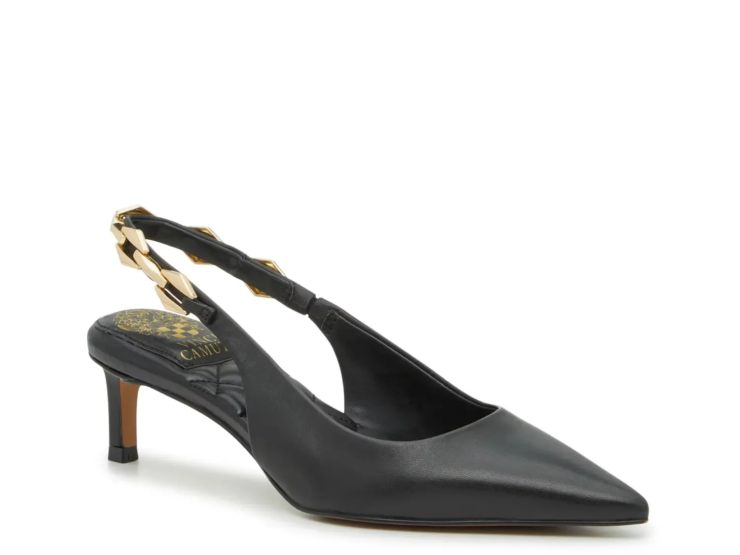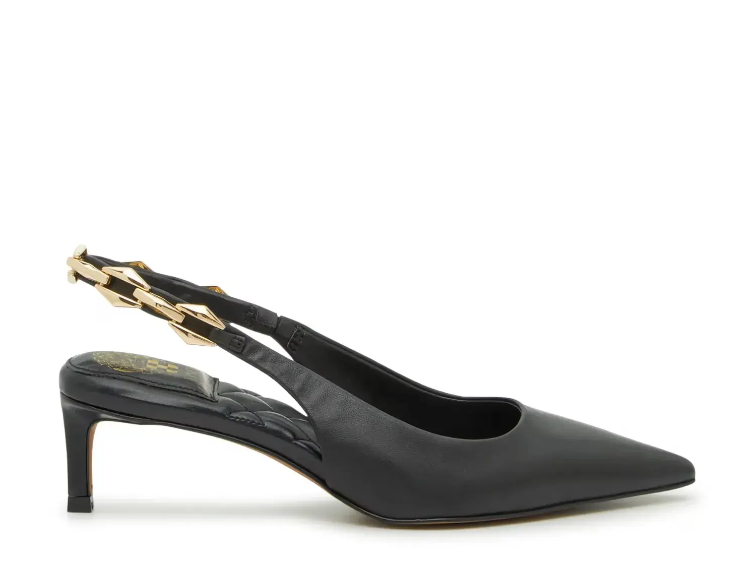 Излучайте современную элегантность в туфлях Ianee от Vince Camuto. С цепочкой, украшающей ремешок на пятке, kitten heel и тонким острым носком, создающим стильный и актуальный силуэт,