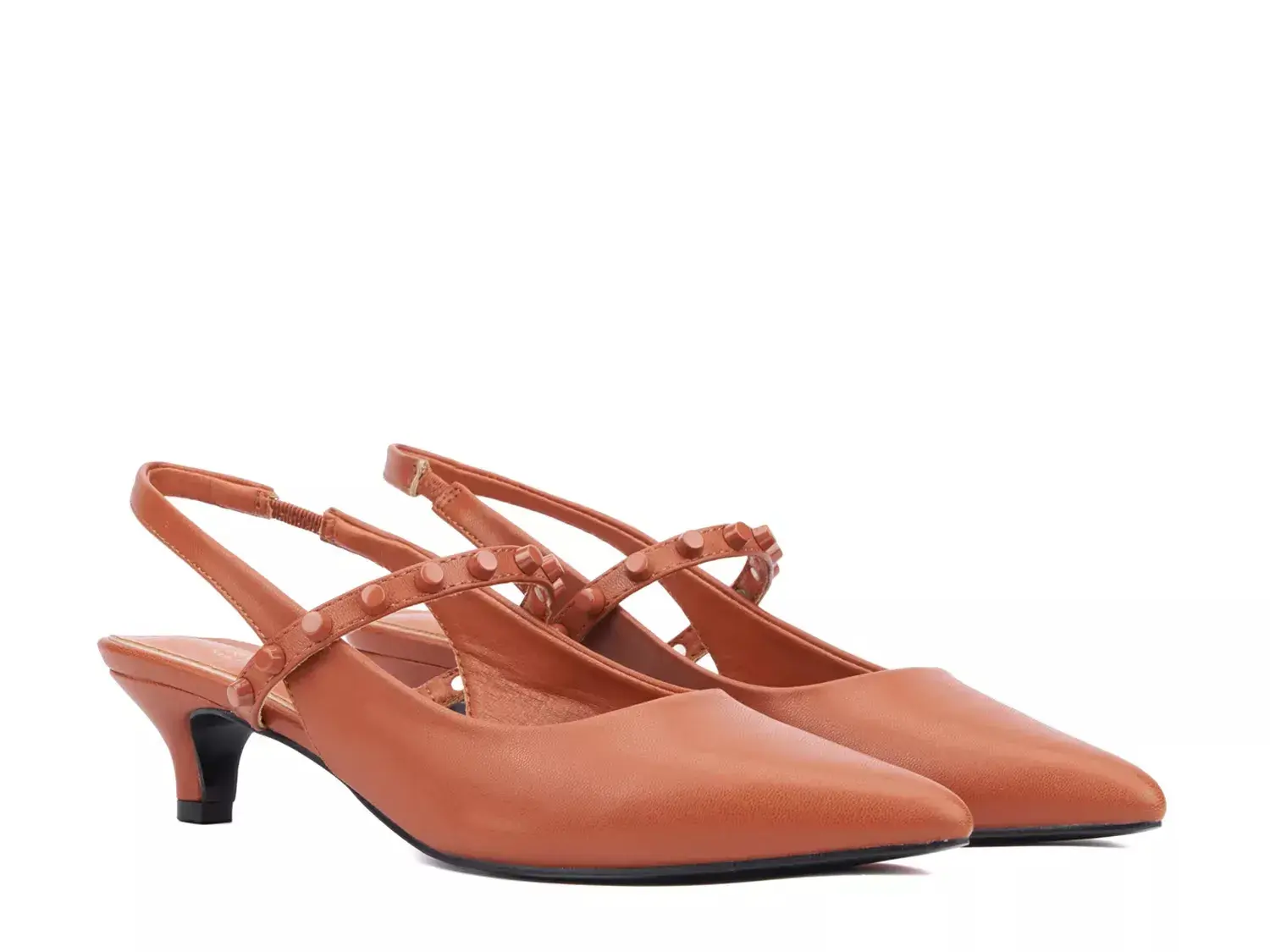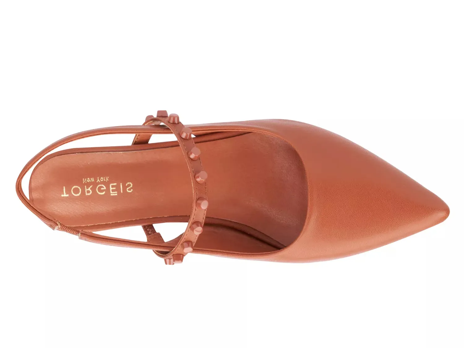 Обновите свой гардероб элегантными туфлями на каблуке Tamara от TORGEIS. Заклепки придают некоторую дерзость этой паре туфель с универсальным заостренным силуэтом и незаметным каблуком-кошкой.