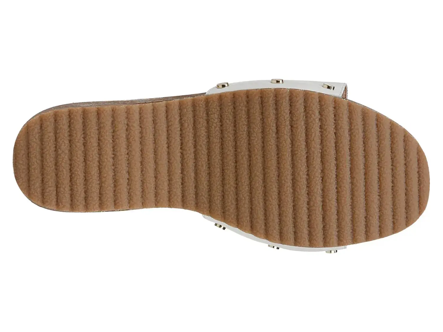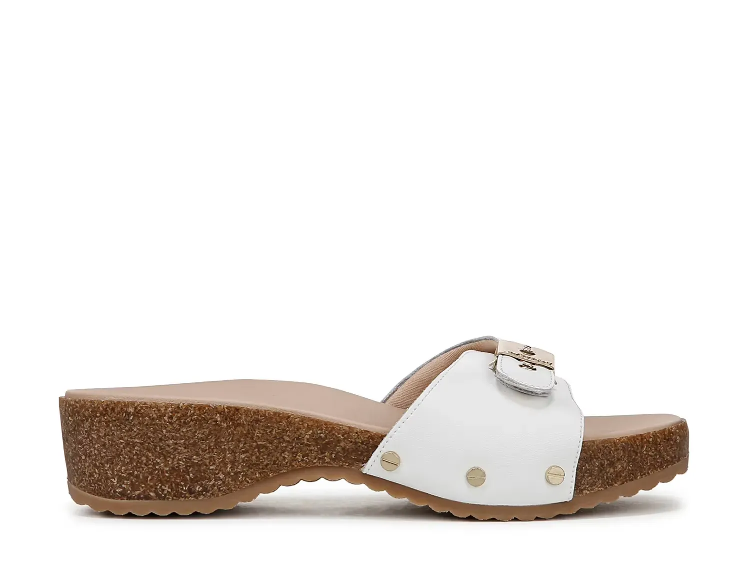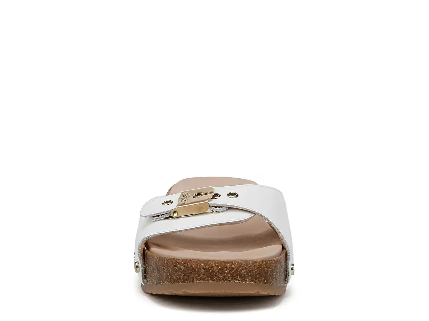 Погрузитесь в классический стиль с оригинальными сандалиями Flex от Dr. Scholl's. Простые слайдеры сандалии имеют золотистую пряжку, квадратный каблук и смелые заклепки.