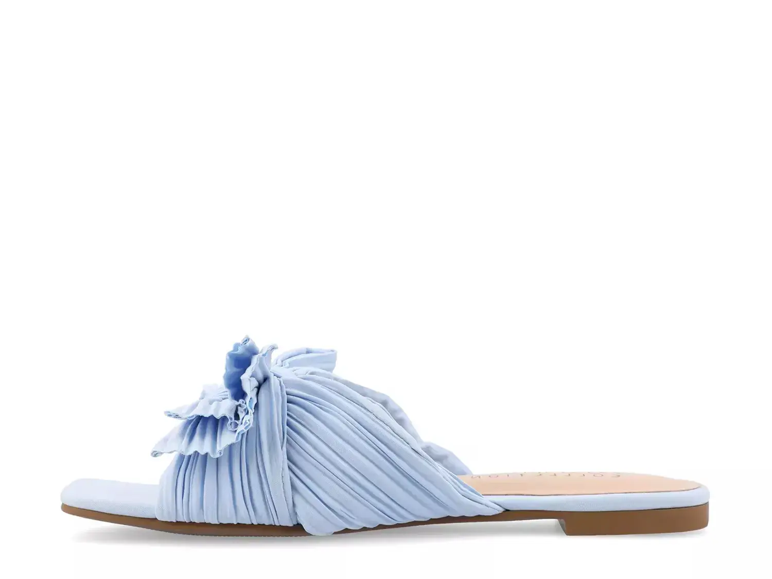Насладитесь модным моментом или двумя, когда вы наденете сандали слайд Serlina от Journee Collection. Плиссированный верх с тональным бантом придает этому слайду его милый, чересчур стильный вид.