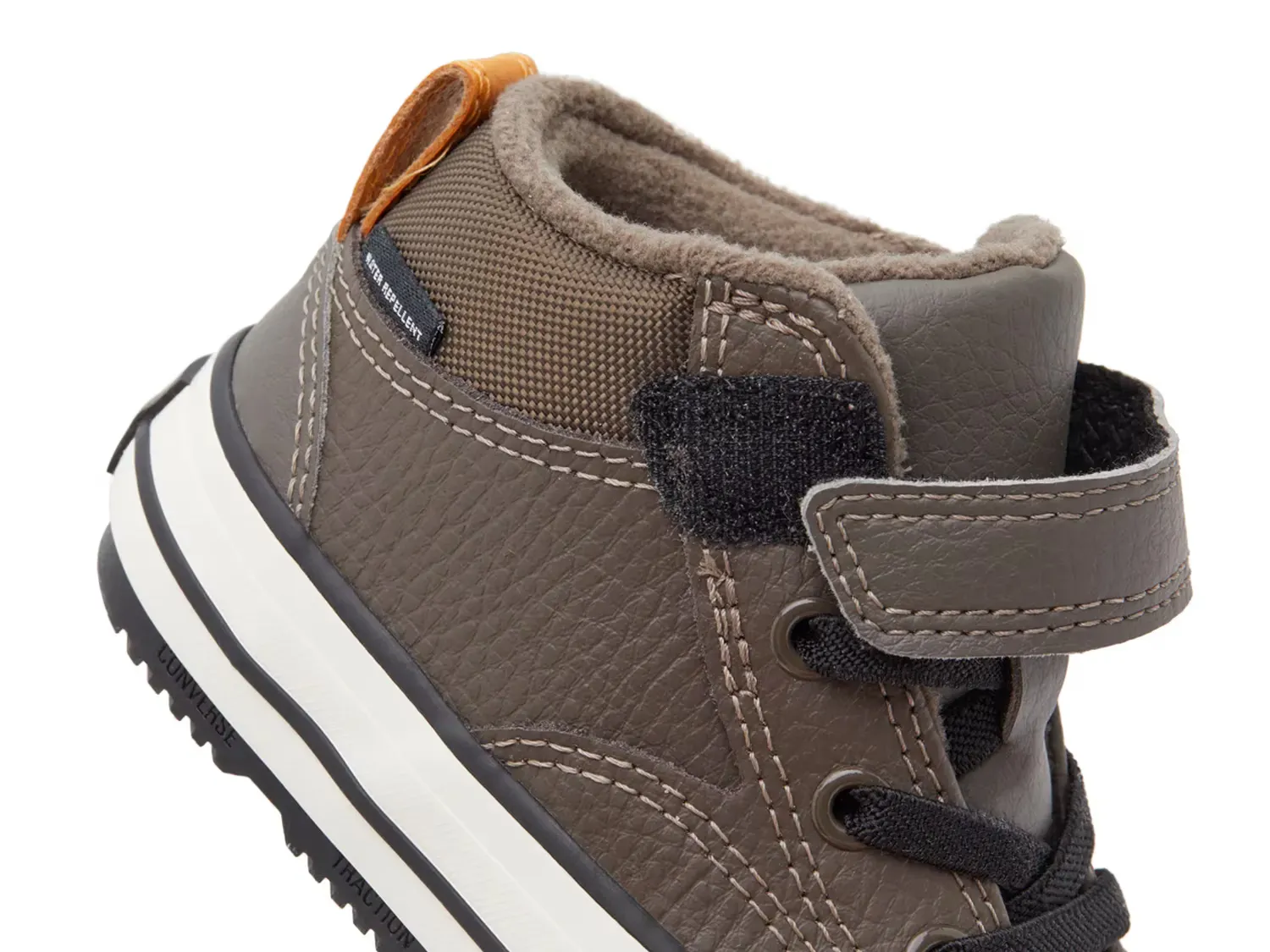 Отличные для активных ножек, кроссовки-ботинки Chuck Taylor All Star Malden Street от Converse - это универсальная часть гардероба вашего малыша. Подошва Converse Traction Utility, прочная кожаная конструкция и удобная застежка на липучке обеспечивают поддержку, комфортную посадку и теплую флисовую подкладку для дополнительного тепла.
