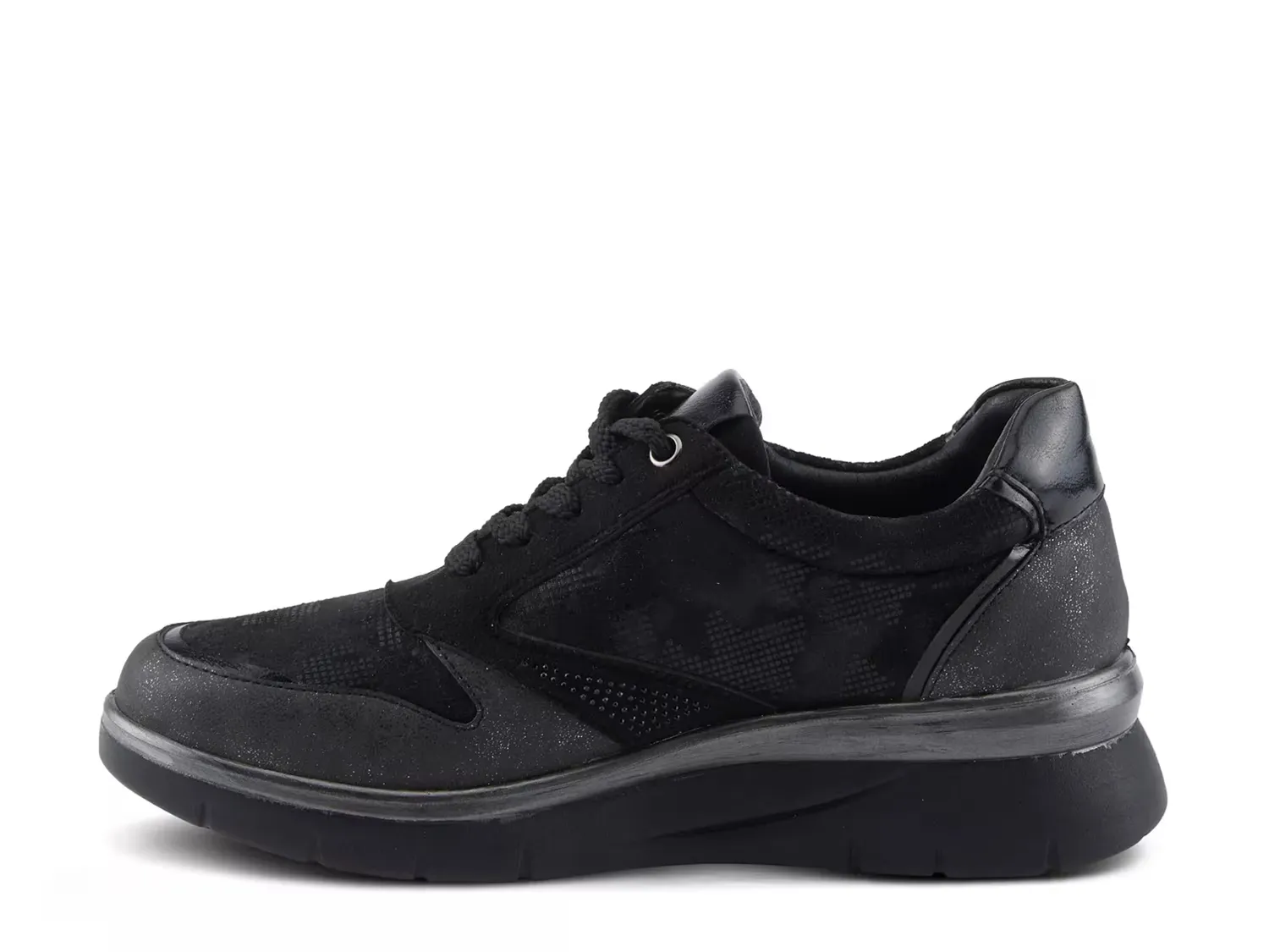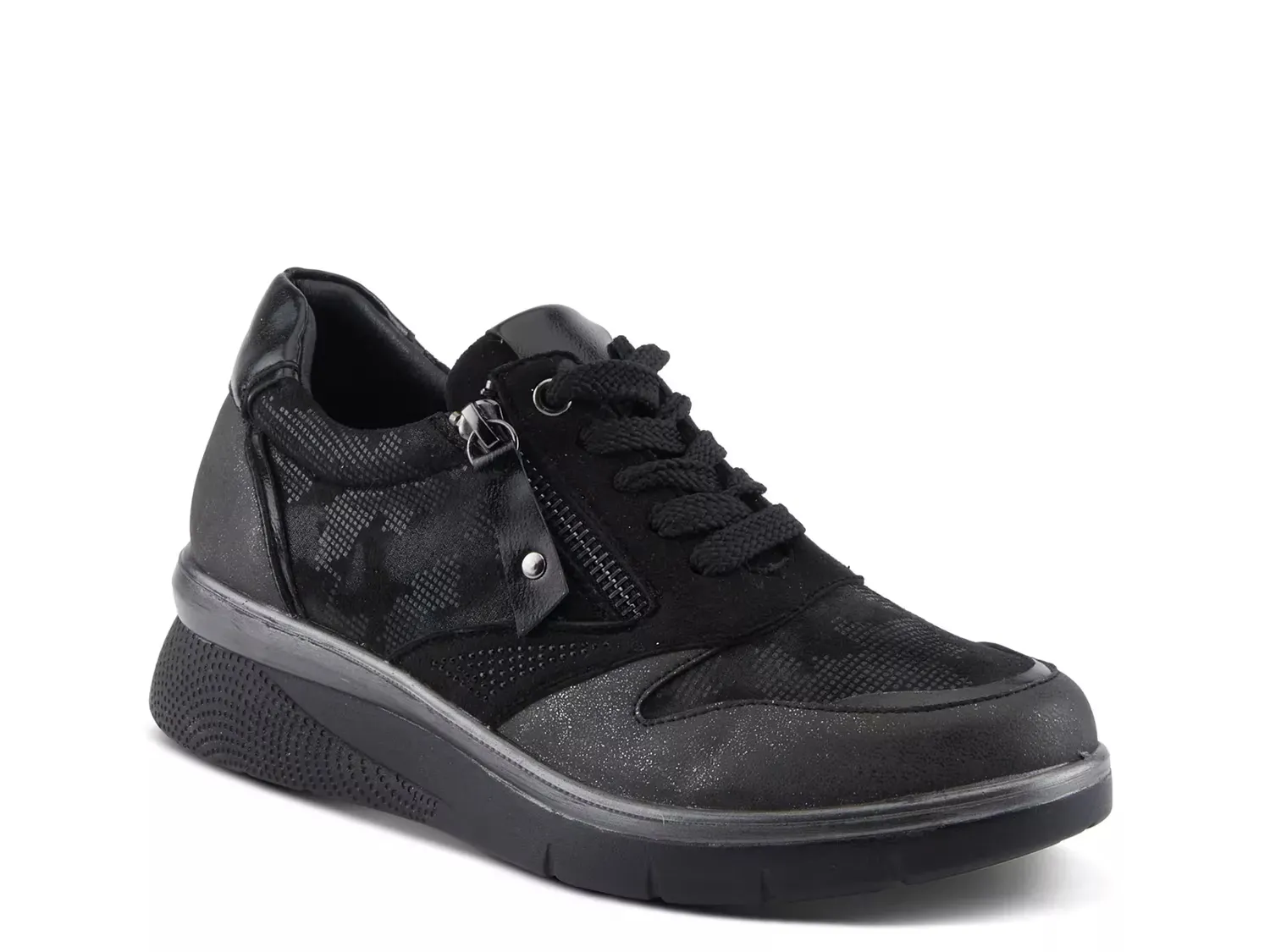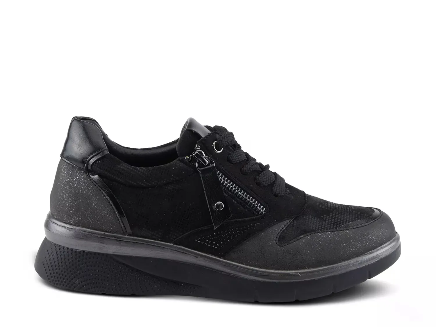 Сияйте в спортивном силуэте с кроссовками Wyclef от Flexus by Spring Step. Эти кроссовки дополнены металлическим блеском, акцентами из блесток и деталями из страз для сверкающего эффекта. Завершает образ многослойный дизайн и платформа, которые превращают эту повседневную пару в модный элемент.