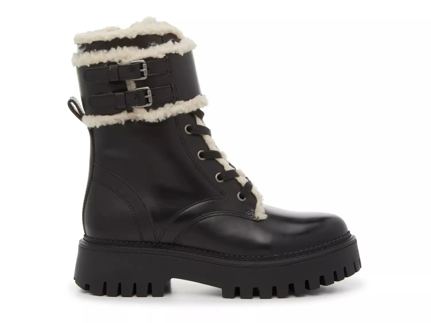 Легко улучшите свой стиль с ботильонами Randi от Bull Boxer. Эта пара в мотом стиле украшена фальшивым овечьим мехом для уютного акцента, в то время как массивный каблук и платформа поднимают общий вид.