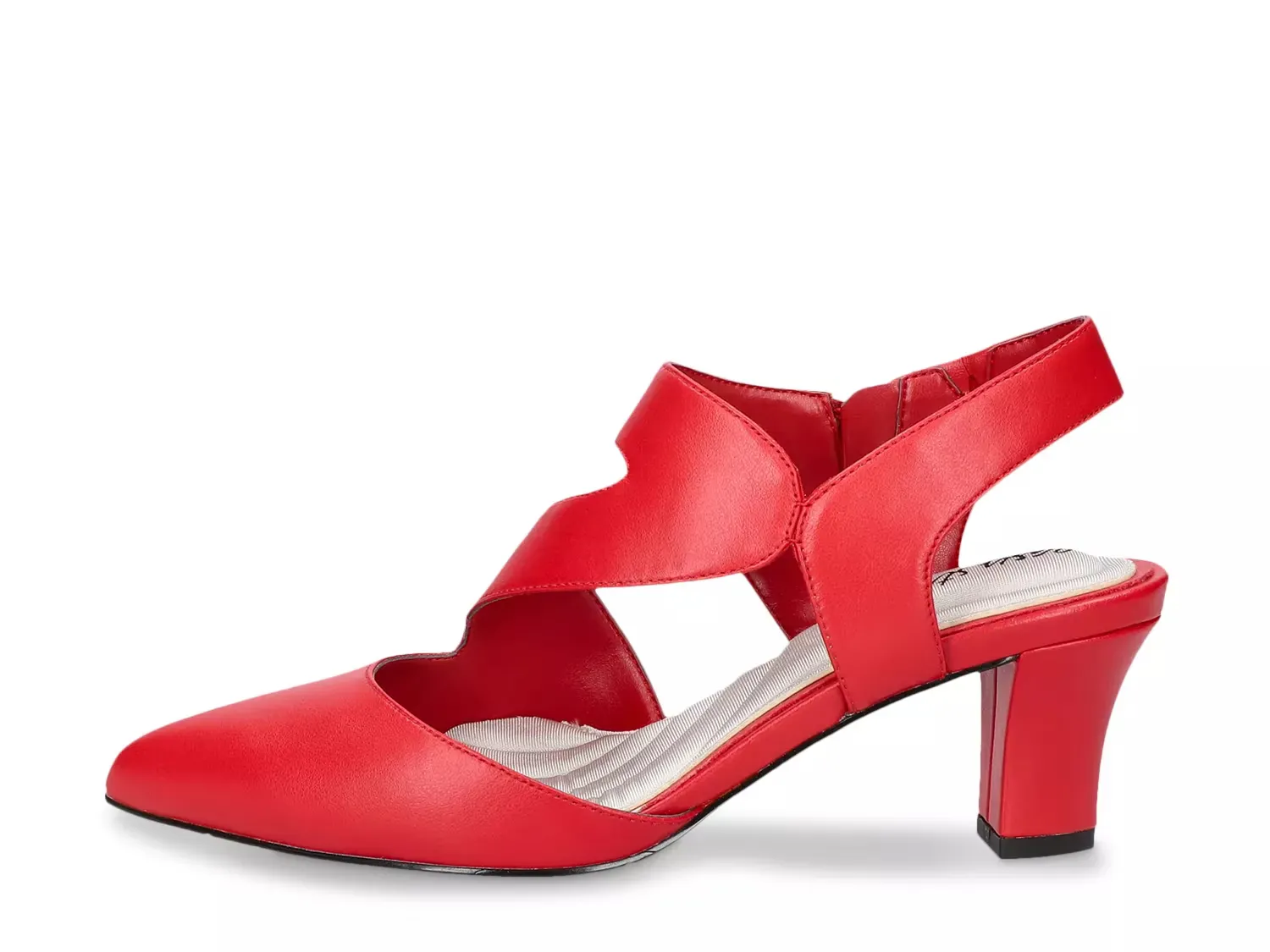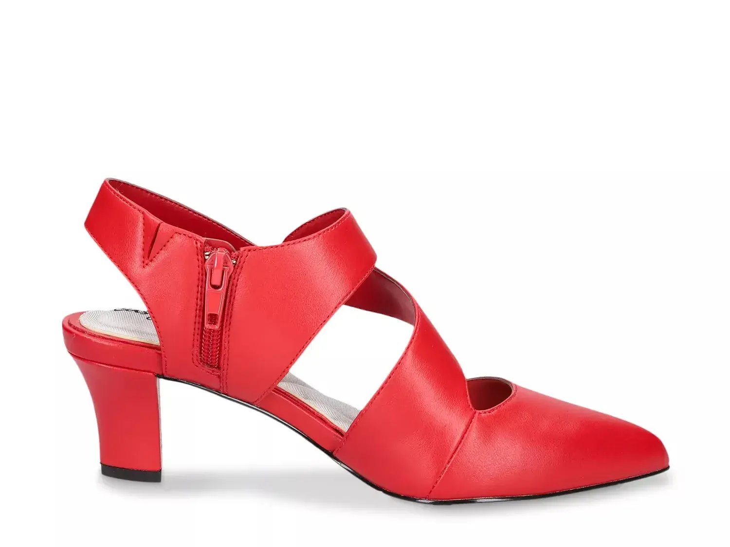 Поднимите свой гардероб с помощью туфель Venue от Easy Street. Эти туфли на каблуке с ремешками имеют ассиметричную переднюю часть, заостренный носок и сужающийся каблук для привлечения внимания.