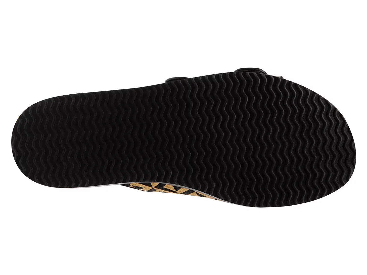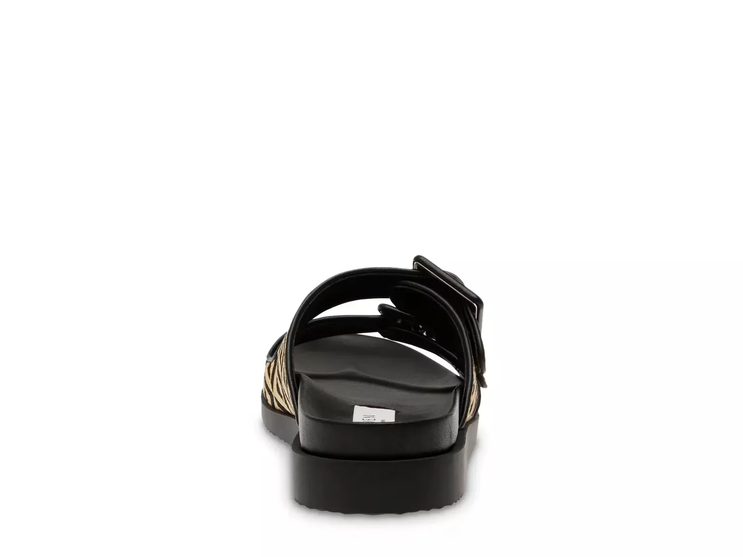 Элегантность сочетается с комфортом в платформенных сандалиях Micah от Steven New York. Двухцветные узоры на верху придают этим шлепанцам привлекательный вид, в то время как резиновая подошва с волнистым протектором обеспечивает отличное сцепление.