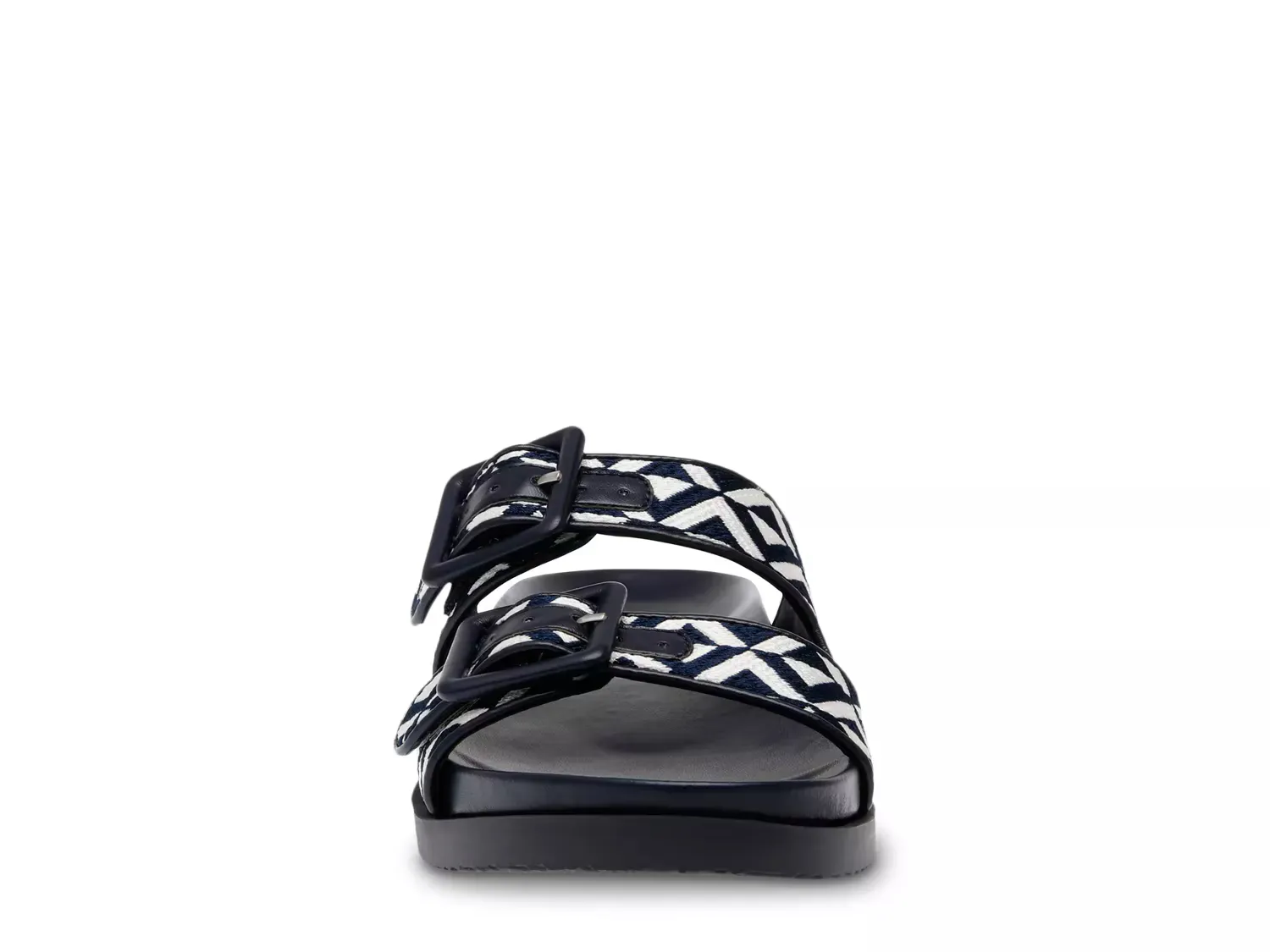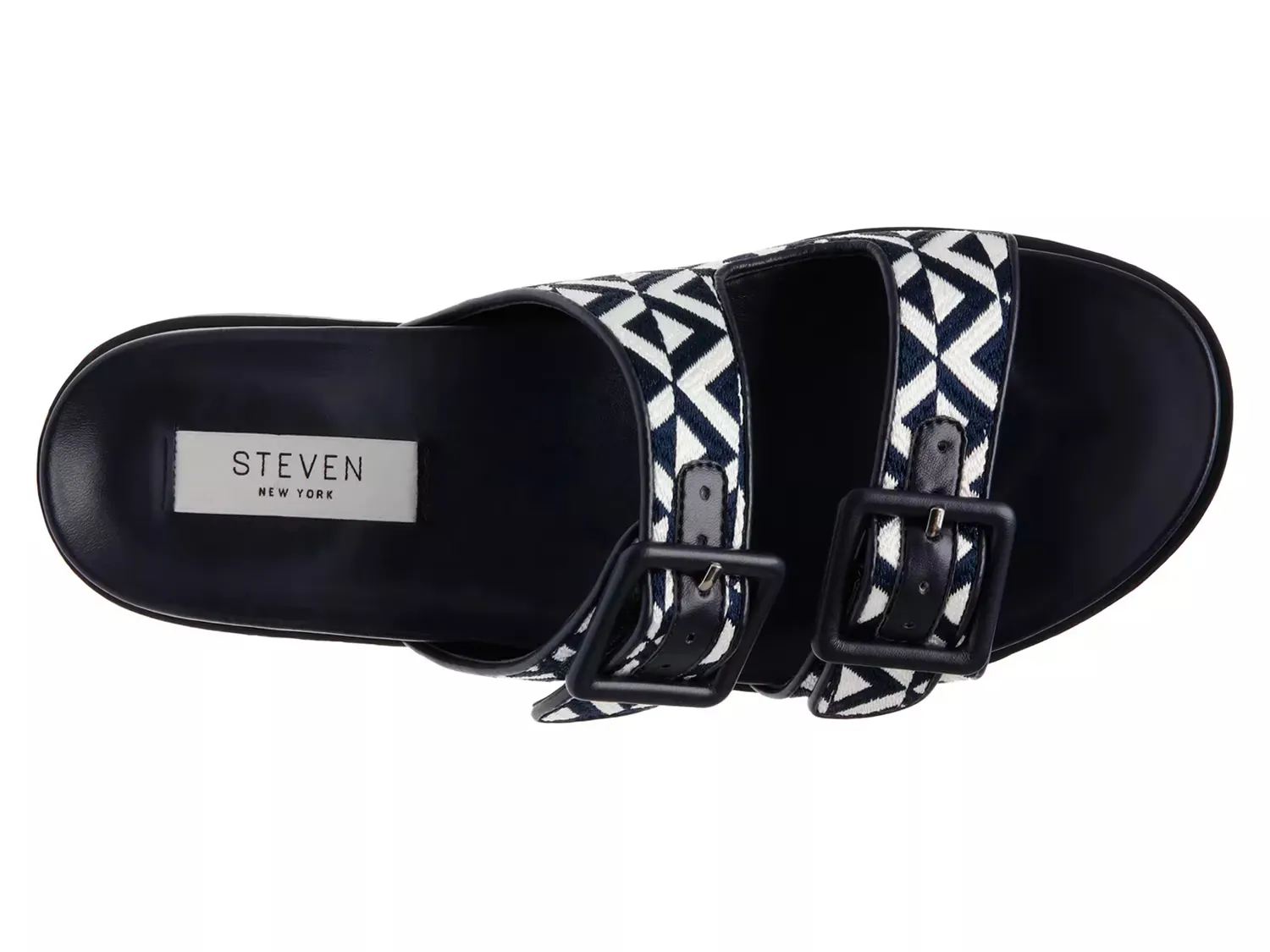 Элегантность сочетается с комфортом в платформенных сандалиях Micah от Steven New York. Двухцветные узоры на верху придают этим шлепанцам привлекательный вид, в то время как резиновая подошва с волнистым протектором обеспечивает отличное сцепление.