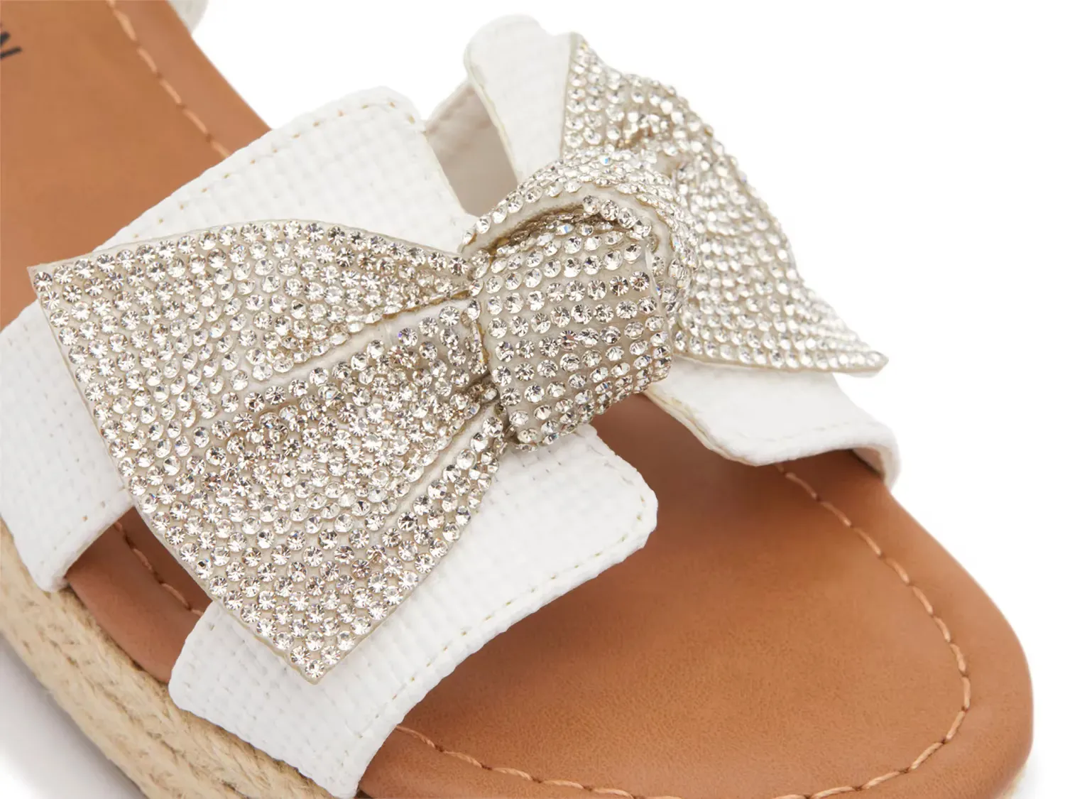 Завершите стиль вашей маленькой модницы с женственным штрихом. Сандалии на танкетке Лара от Steve Madden имеют обвязывающий дизайн с украшенной стразами бабочкой сверху. Они имеют эспадрильную подошву, которая придает образу немного пляжного шарма.