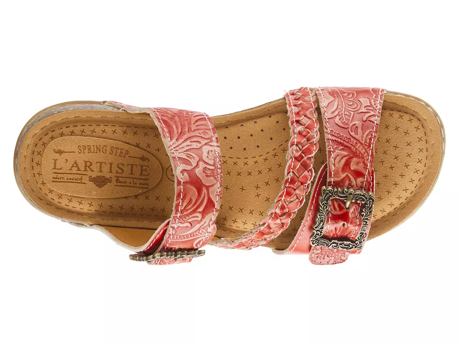 Искусство и мода гармонично сочетаются в платформенных сандалиях L'Artiste Astra. Антикварная рифленая пряжка и асимметрично заплетенная средняя лямка поднимают модный статус этих ручной росписи сандалий.