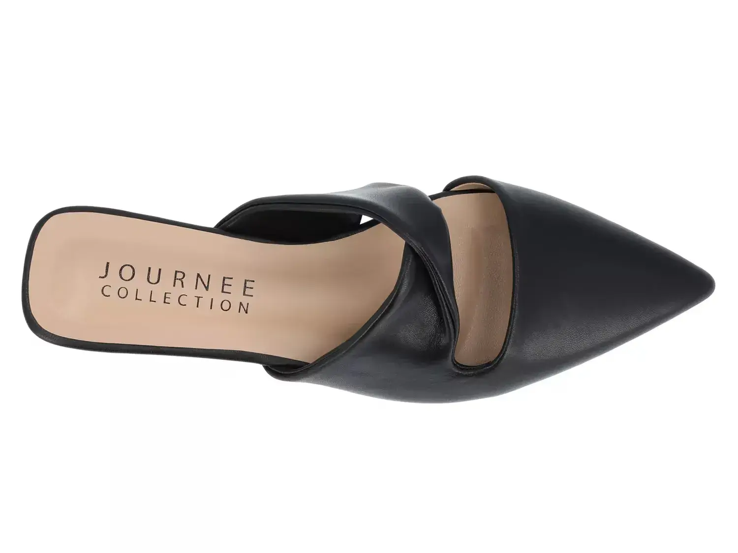 Освежите свой повседневный стиль с помощью мюли Enniss от коллекции Journee. Изготовленные из роскошного синтетического материала, эти слайды имеют детали с закрученными ремешками и острый носок, что подчеркивает их смелый вид, а мягкая стелька обеспечивает комфорт на протяжении всего дня.
