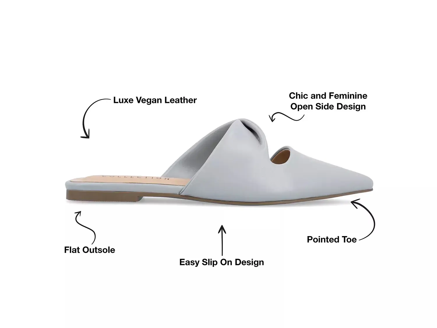 Освежите свой повседневный стиль с помощью мюли Enniss от коллекции Journee. Изготовленные из роскошного синтетического материала, эти слайды имеют детали с закрученными ремешками и острый носок, что подчеркивает их смелый вид, а мягкая стелька обеспечивает комфорт на протяжении всего дня.
