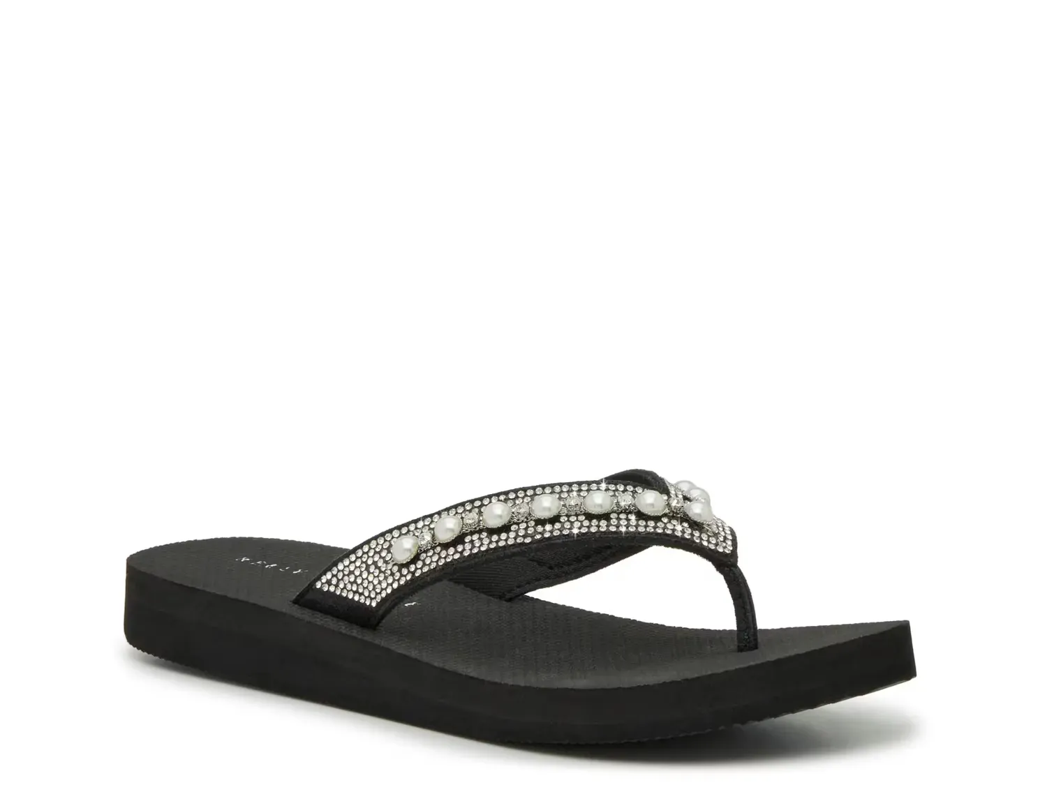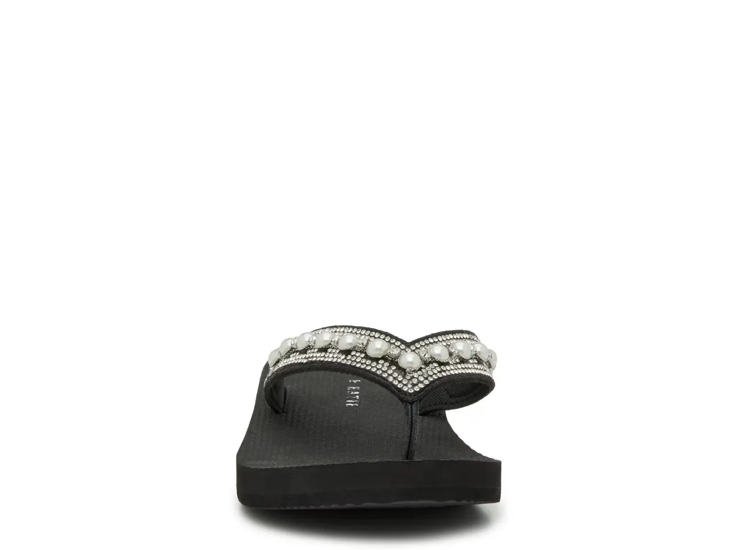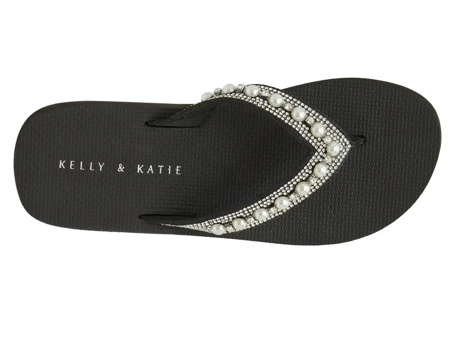 Добавьте немного элегантности к простому силуэту с сандалиями Visciola от Kelly & Katie. Этот повседневный стиль, вдохновленный шлепанцами, выполнен с камнями и жемчужными украшениями вдоль ремешка.