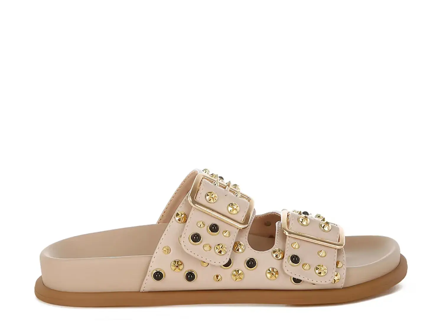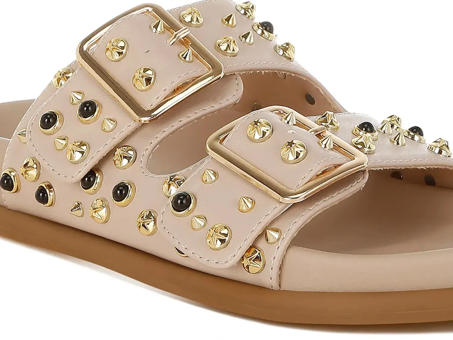 Добавьте остроты своему образу с сандалиями Jayata от London Rag. Простой дизайн с двойными ремешками украшен шипованными акцентами и золотистыми пряжками, которые привлекают внимание.