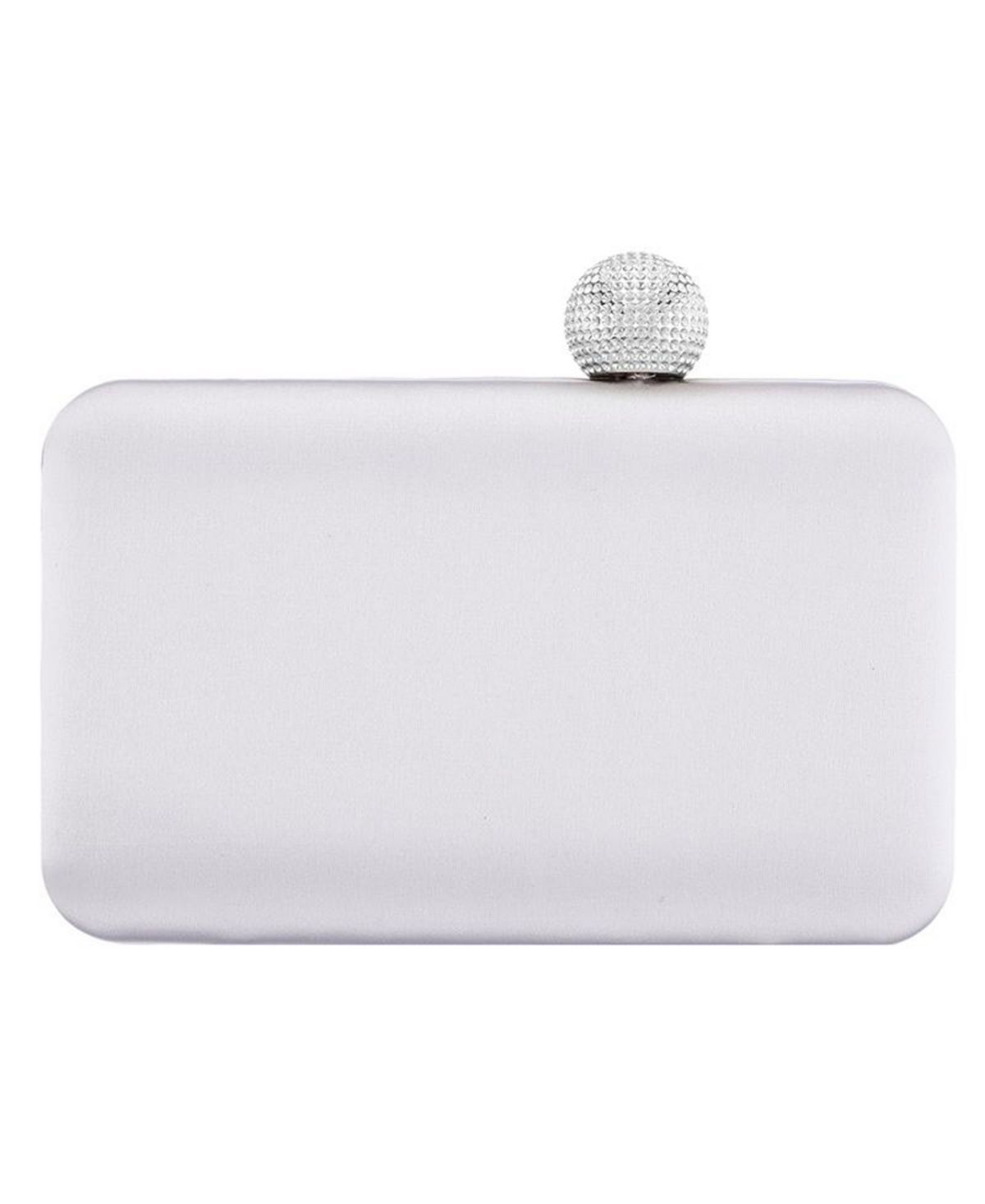 Фирменная застежка с кристаллами украшает элегантный клатч в оправе, дополненный застегивающимся ремешком-цепочкой, что обеспечивает универсальный стиль.