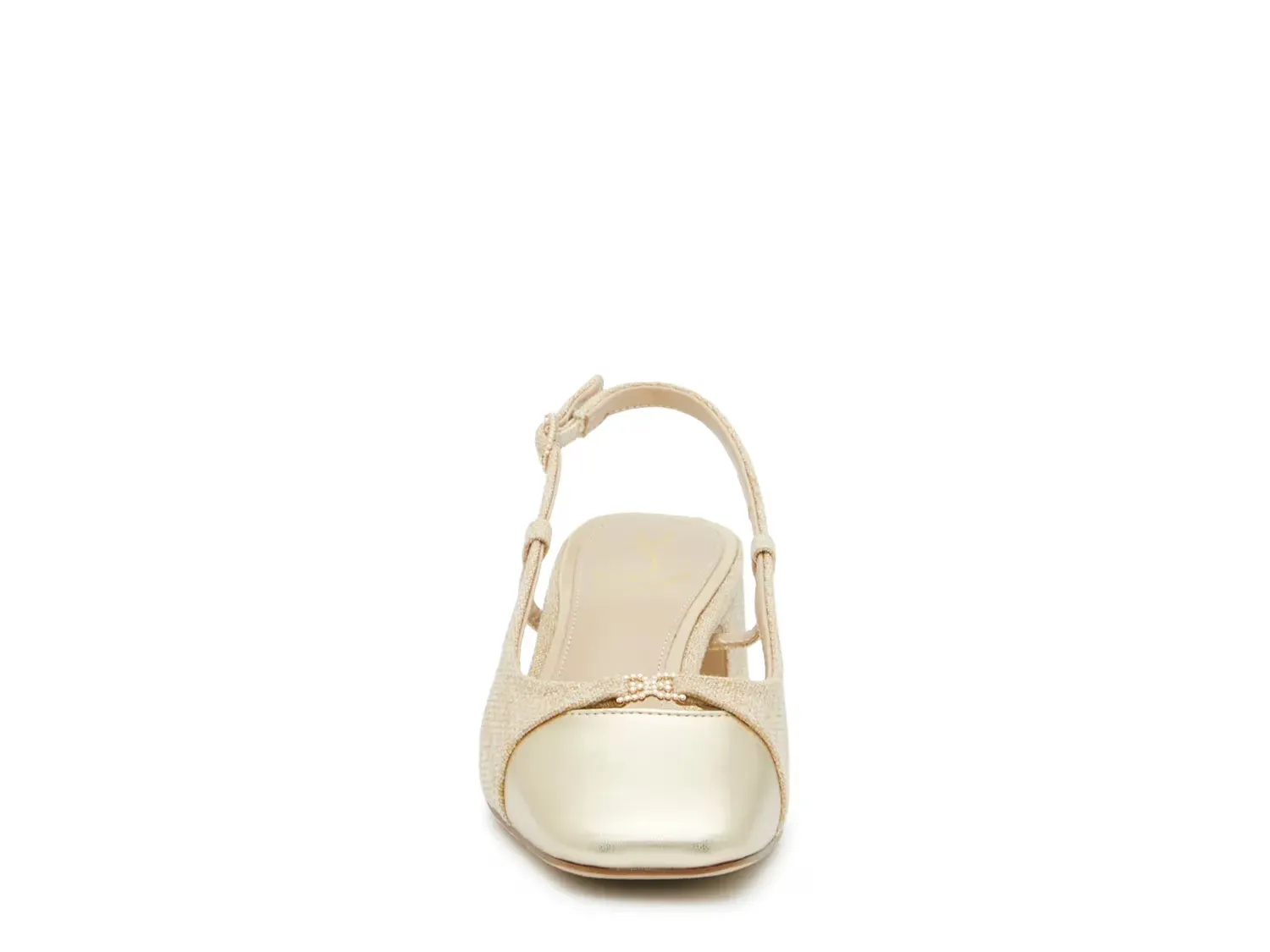 Совершенствуйте любой образ с помощью идеальных туфель Tarra от Sam Edelman. Этот слингбэк выполнен в элегантном золотистом оттенке, с отшлифованным носком и устойчивым квадратным каблуком.