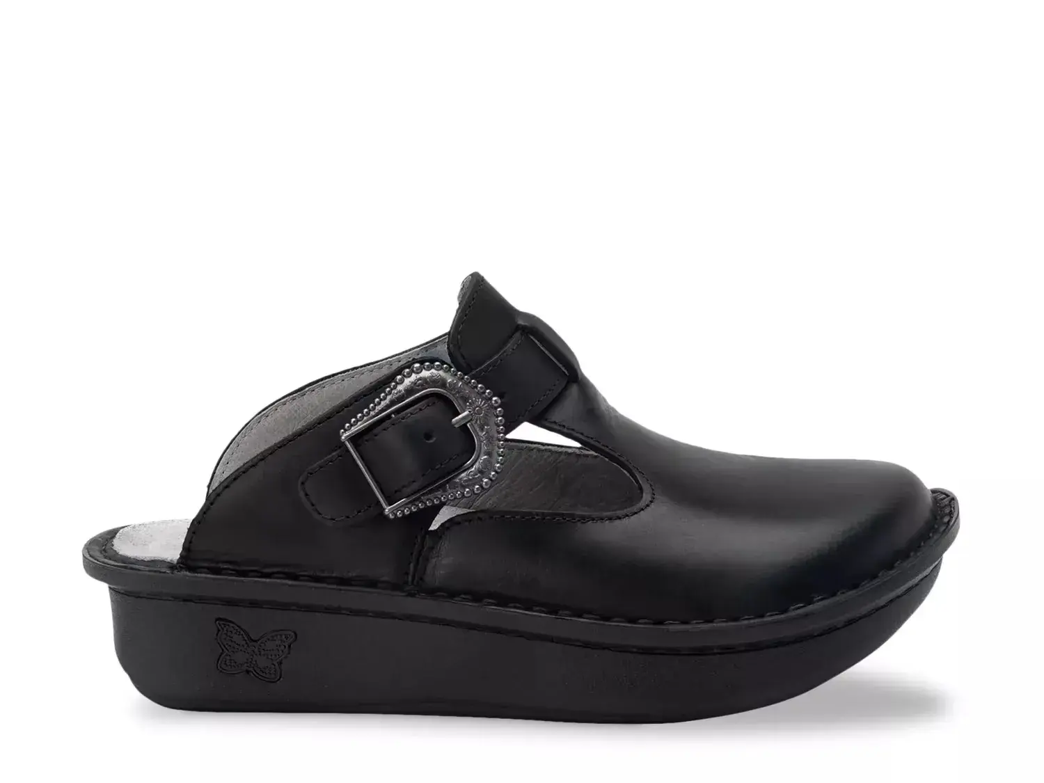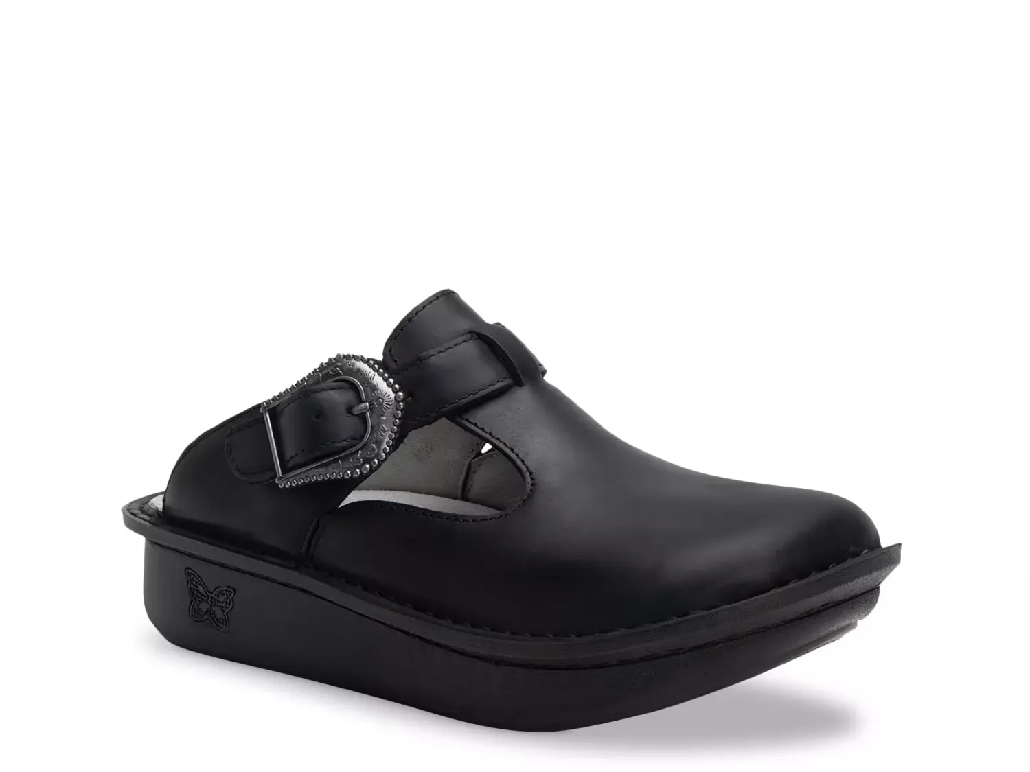 Оставайтесь на ногах без усталости в классических рабочий сабо от Alegria. Эти прочные кожаные туфли без застежек оснащены мягкой стелькой и каблуком-танкеткой для долговременной поддержки.