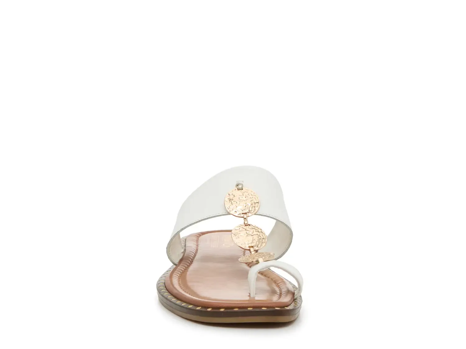 Завершите свой образ сандалиями Penny Coin от Coach и Four. Силуэт-слиперы отличается стильным квадратным носком, элегантными круглыми золотистыми акцентами и модным кольцом на пальце.