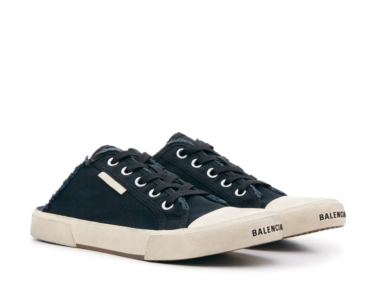 Погрузитесь в простой стиль с мюлями Paris от Balenciaga. Это улучшенная версия классической повседневной обуви, эта пара имеет спортивный силуэт, вдохновленный кроссовками, и выполнена в стиле «слип-он» для легкости надевания. Завершают образ потертые детали и вулканизированная подошва, придающая вид, как будто обувь уже была в употреблении, что помогает достичь винтажного настроения.
