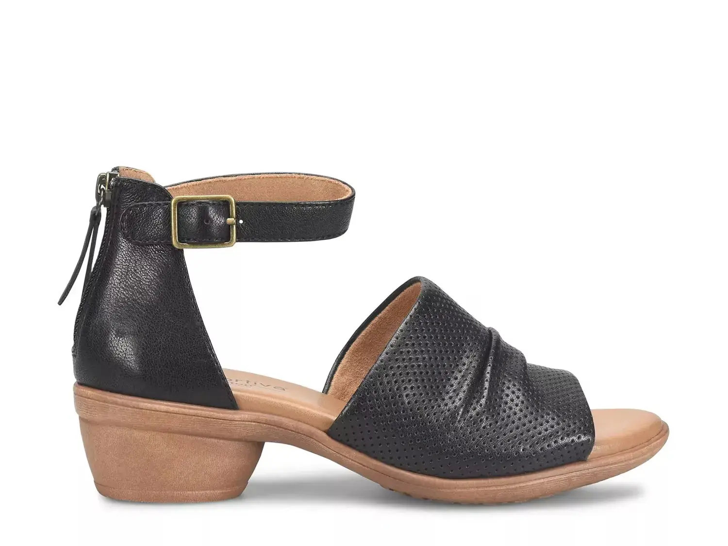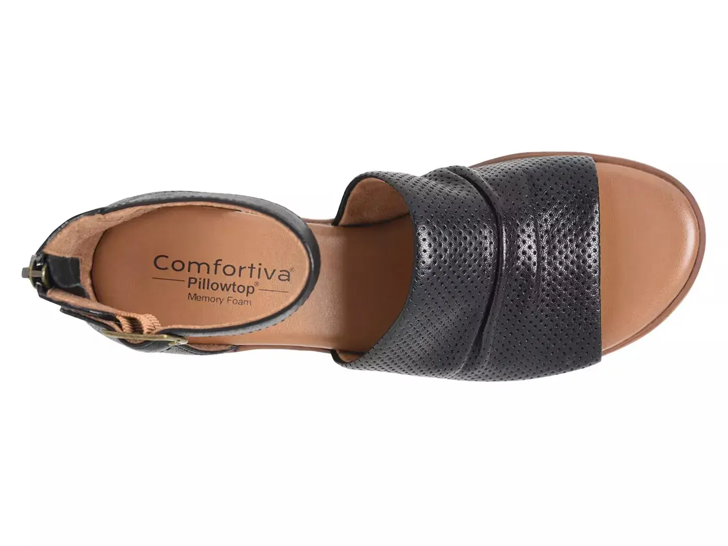 Пополните свой летний гардероб сандалиями Newnan от Comfortiva. Эта стильная пара с перфорированной кожаной верхней частью и задней молнией привлекает внимание, а мягкая стелька из мемори-фом гарантирует комфорт при носке.