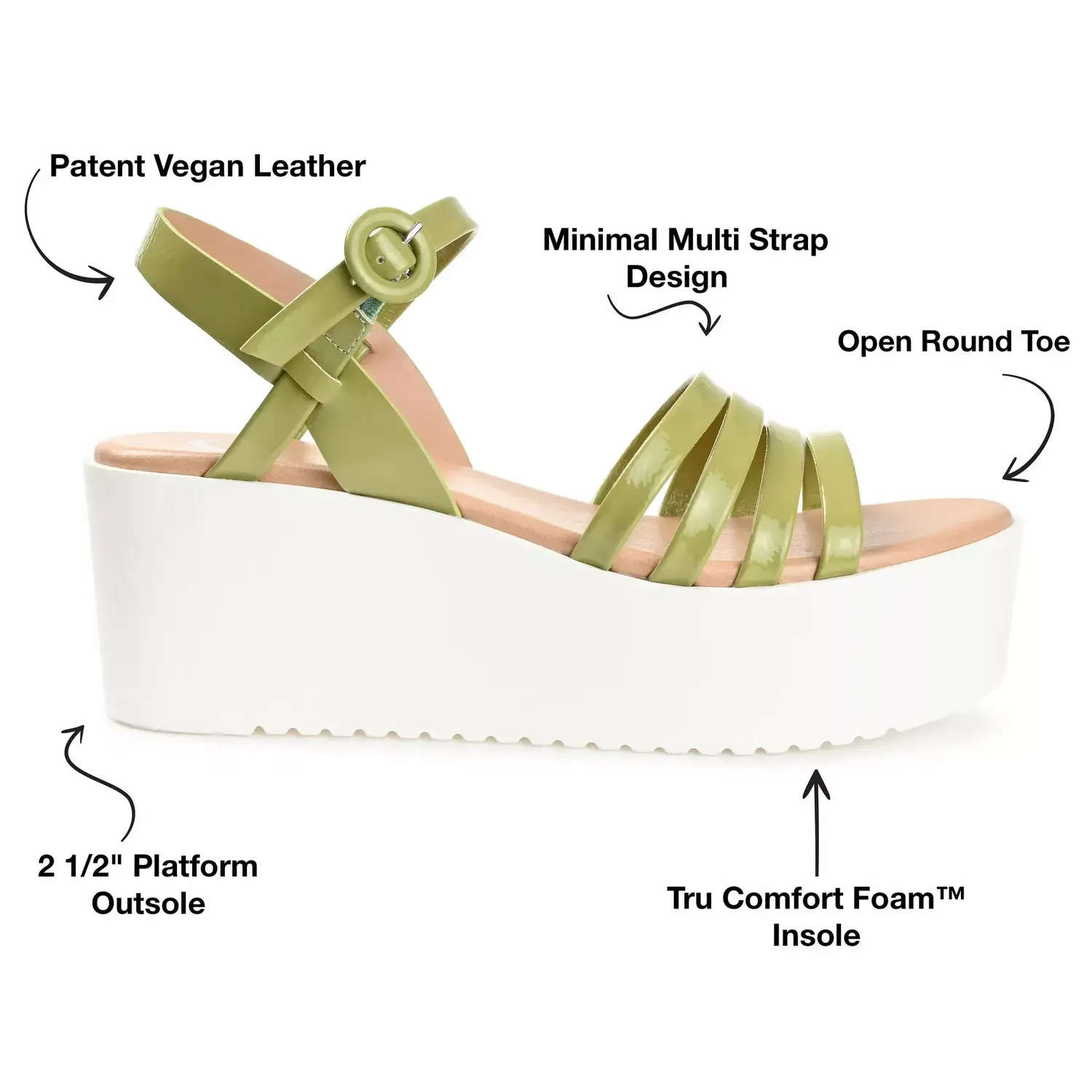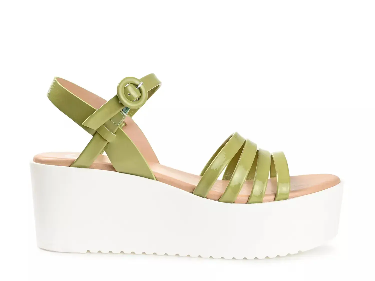 Поднимите свой базовый летний образ с помощью платформенных сандалий Miragge от Journee Collection. Эти wedges-сандалии выполнены на белой платформе, контрастирующей с верху, который изготовлен из запатентованного веганского синтетического материала.